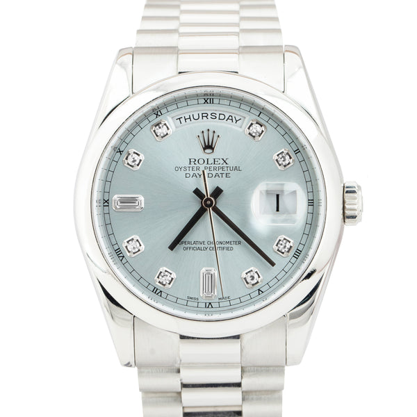 Rolex Day-Date Presidential 36mm Glacier Blue DIAMOND Platinum Watch 118206