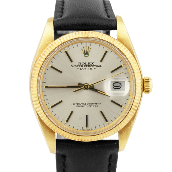 Rolex Oyster Perpetual Date 18K Yellow Gold Silver 34mm Automatic Watch 1503