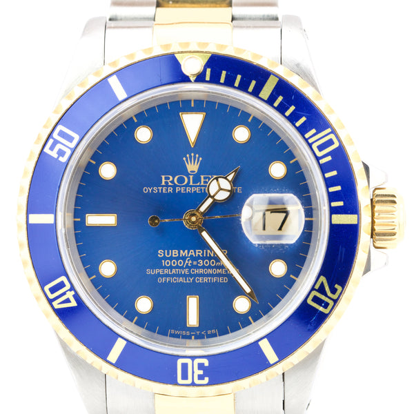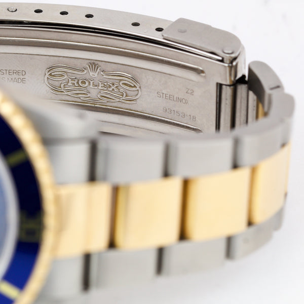 Rolex Submariner Two-Tone 18K Gold Blue Steel Buckle 40mm Oyster Watch 16613