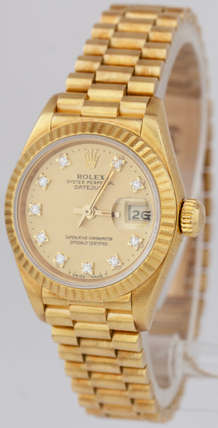 UNPOL. Ladies Rolex DateJust President 26mm Diamond Champagne Dial Watch 69178