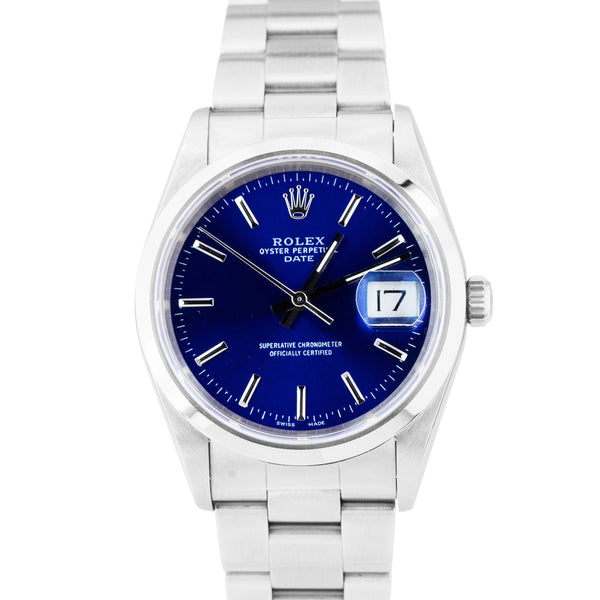 UNPOLISHED NO-HOLES Rolex Date 34mm Blue Stainless Steel Oyster Watch 15200
