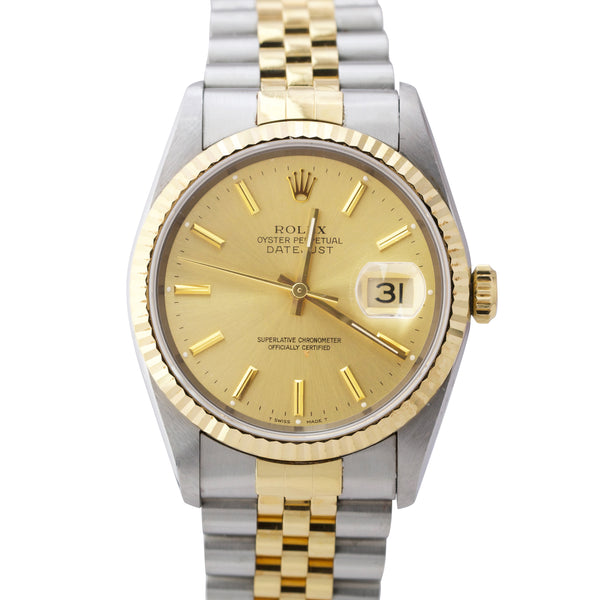 UNPOLISHED Rolex DateJust 36mm 18K Gold Steel Champagne Automatic Watch 16233 BP
