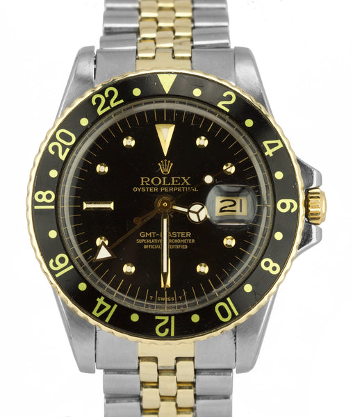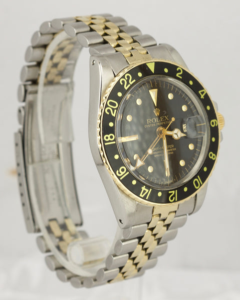 Vintage 1973 Rolex GMT-Master Black Nipple 1675 40mm Two Tone Gold Watch