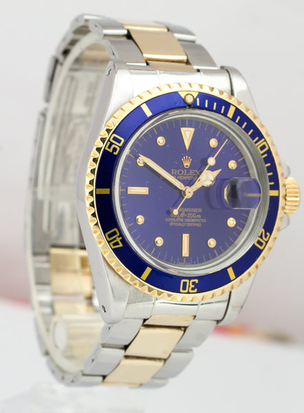 Vintage 1977 Rolex Submariner Date Nipple Two Tone Gold Blue 40mm Watch 1680