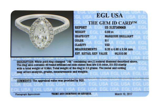 Yes, this item will include the EGL USA 'The Gem ID Card' pictured and an additional Collectors Coins & Jewelry certificate of appraisal and authenticity as per buyer request. |