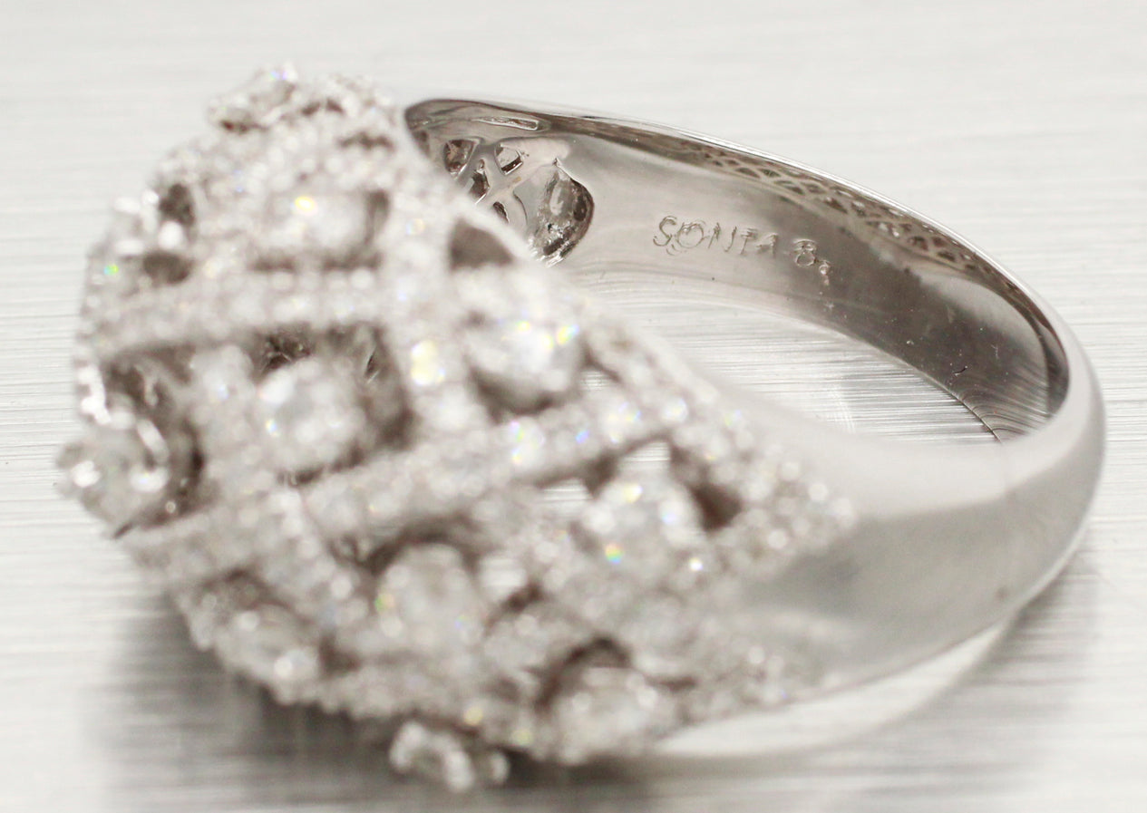 This gorgeous Sonia B Designs original features larger diamonds that are securely set yet sway with every step. The dynamic motion within this ring is sure to be an eye-catcher, and truly adds to the unique nature of this design.