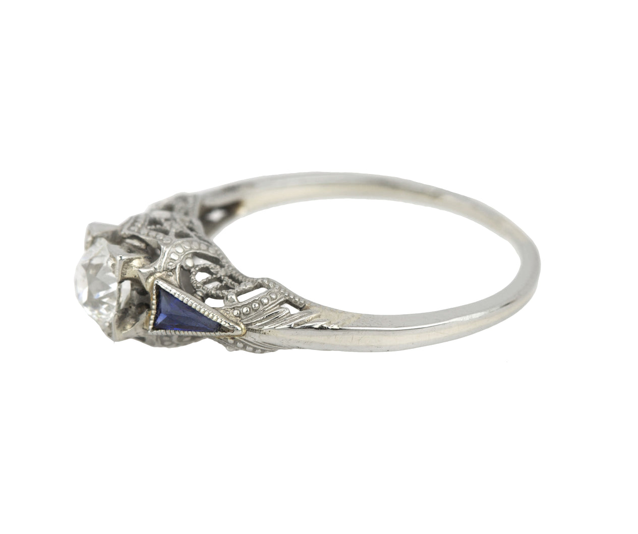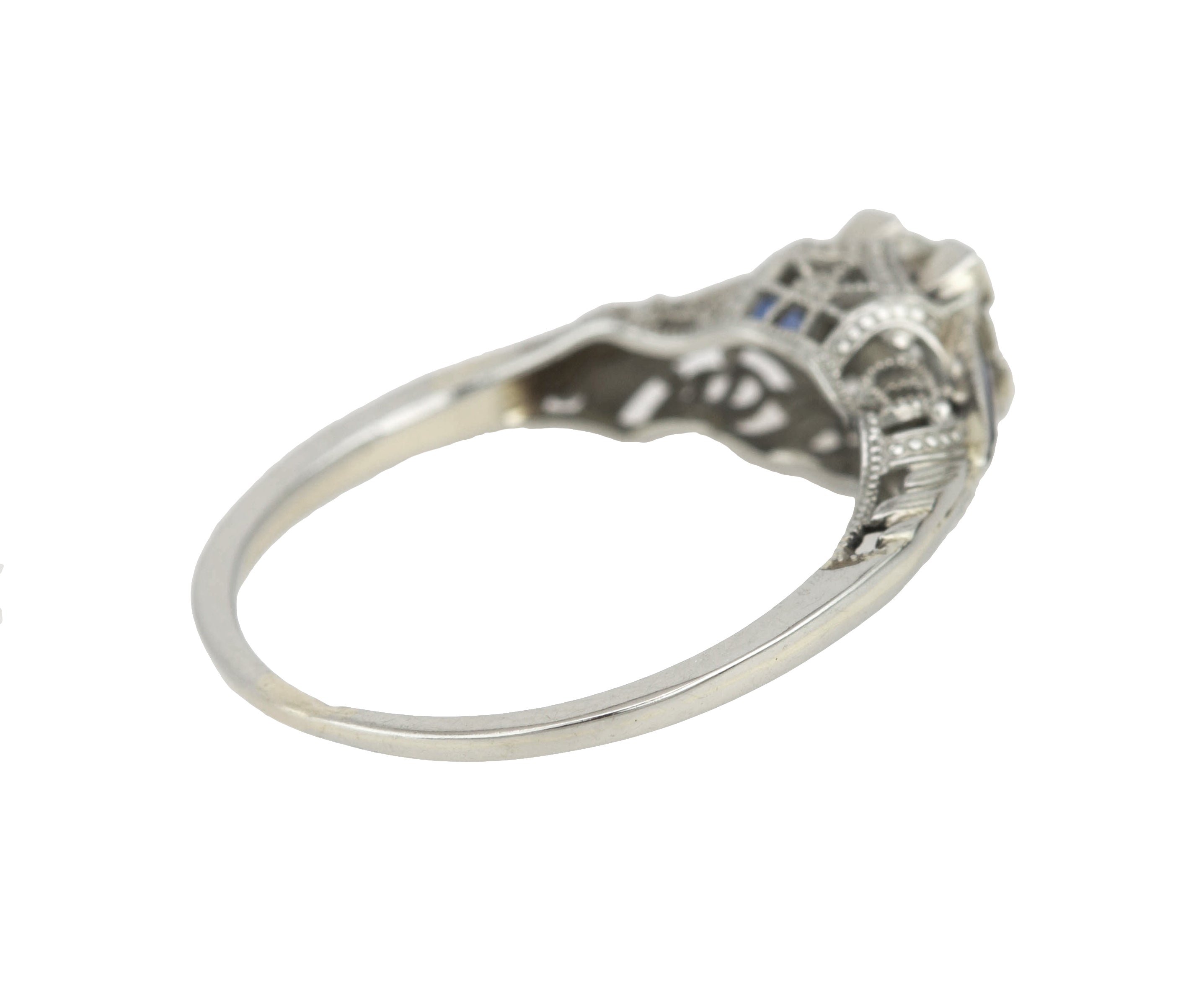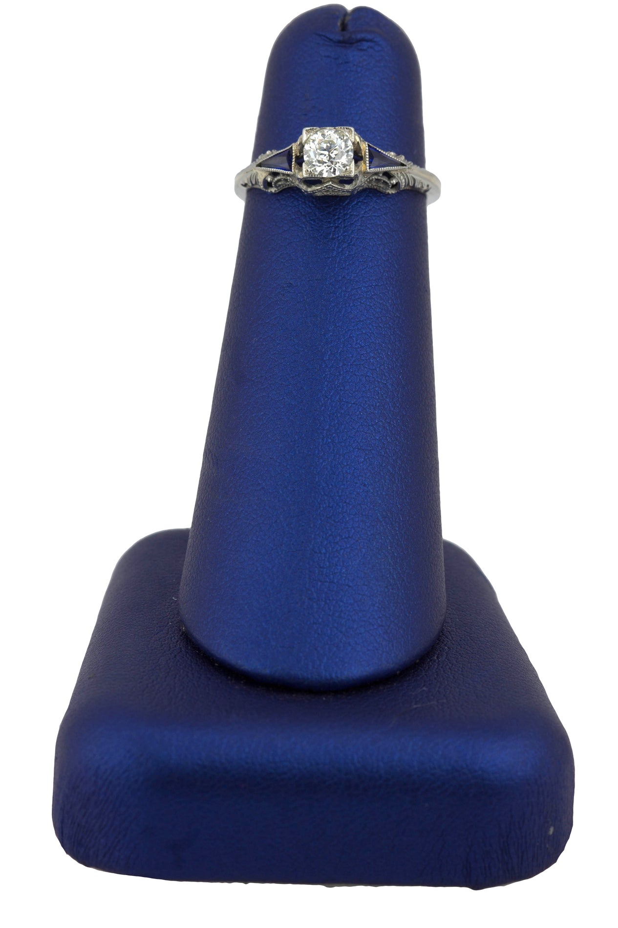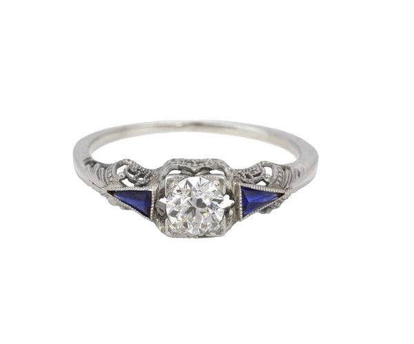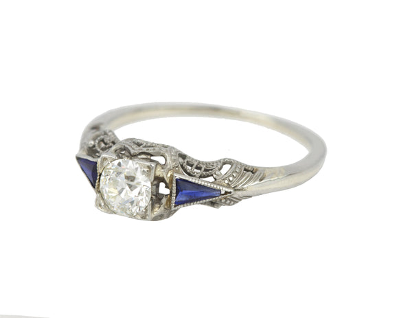 Art Deco 14K White Gold 0.33CT Solitaire Diamond Sapphire Engagement Ring