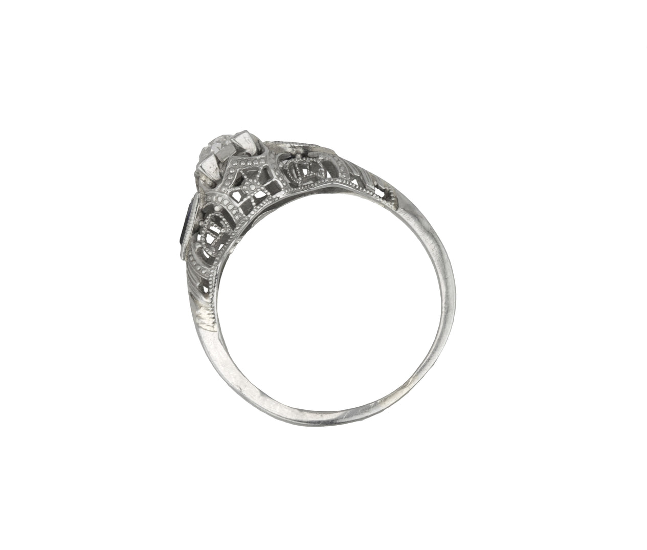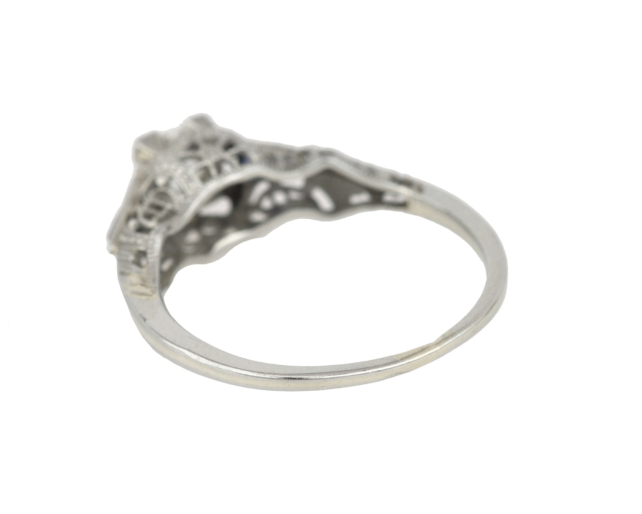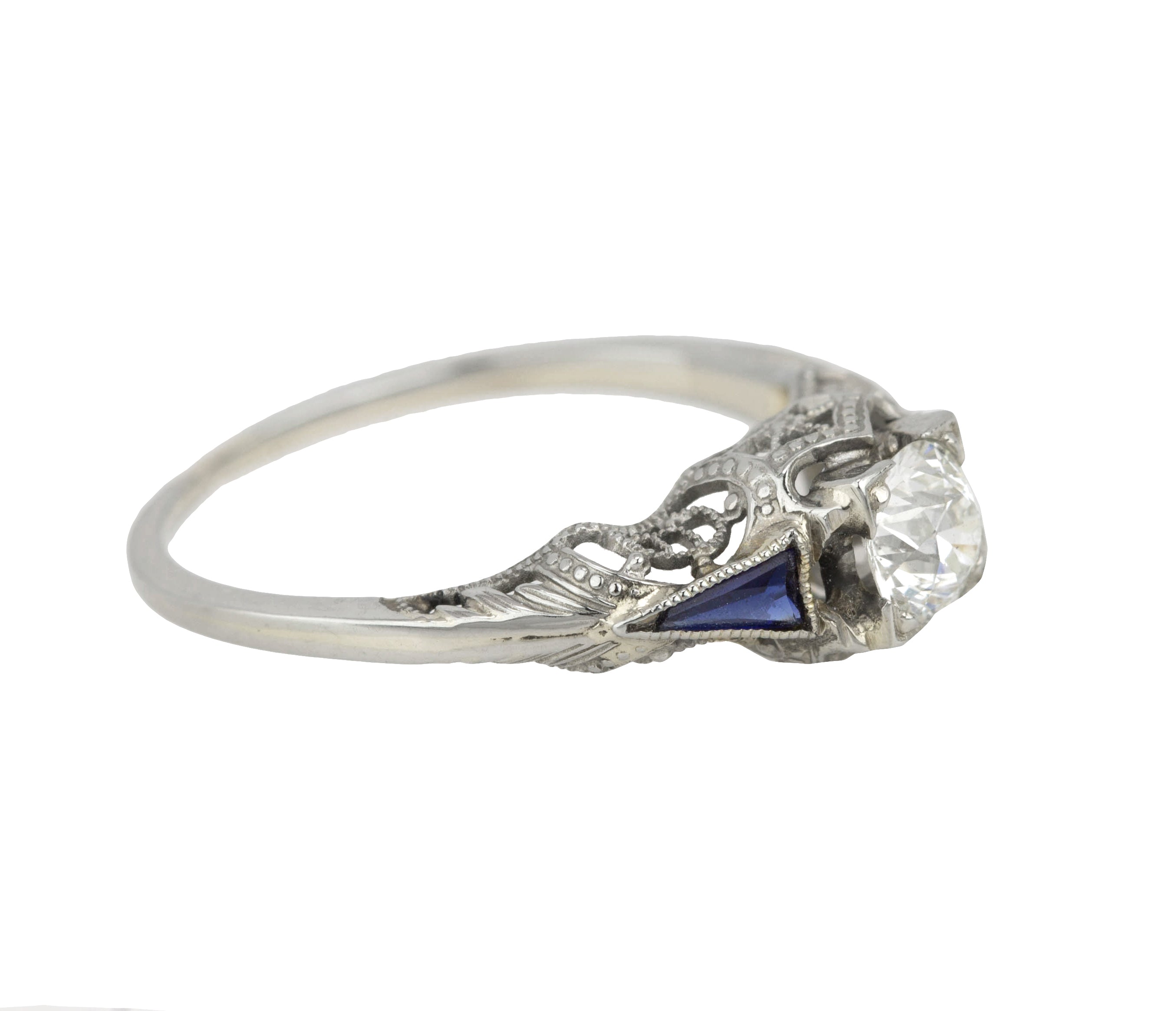 Art Deco 14K White Gold 0.33CT Solitaire Diamond Sapphire Engagement Ring