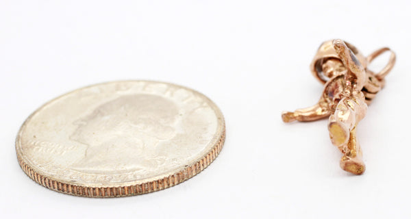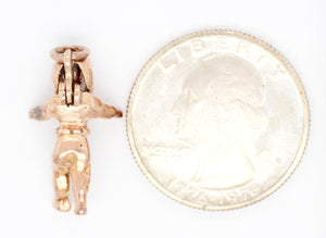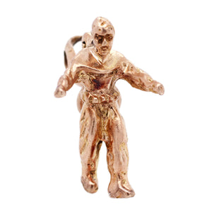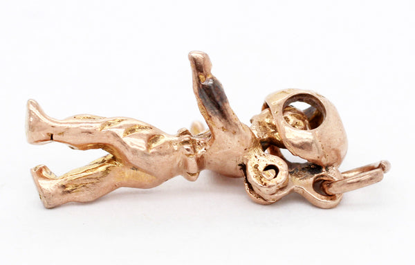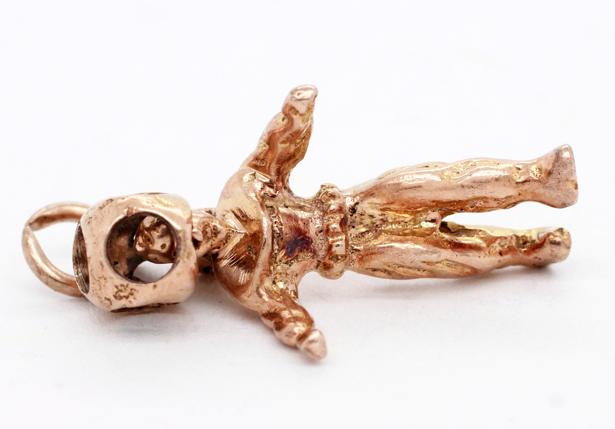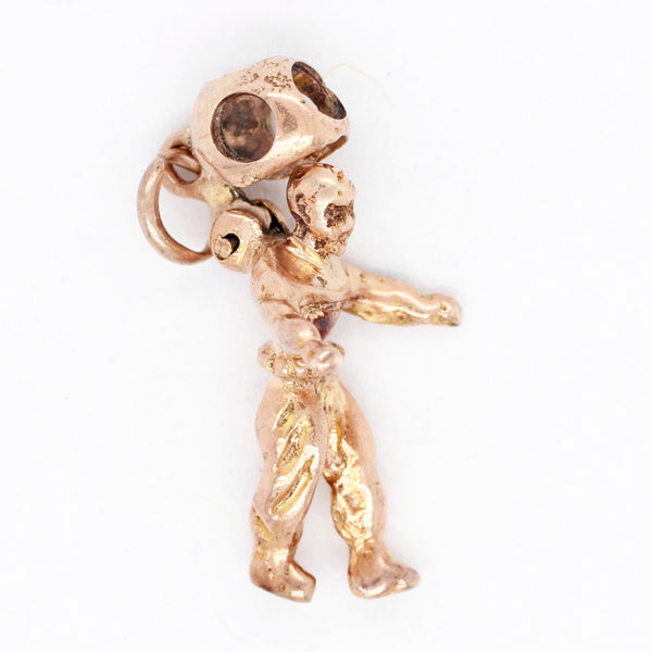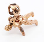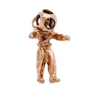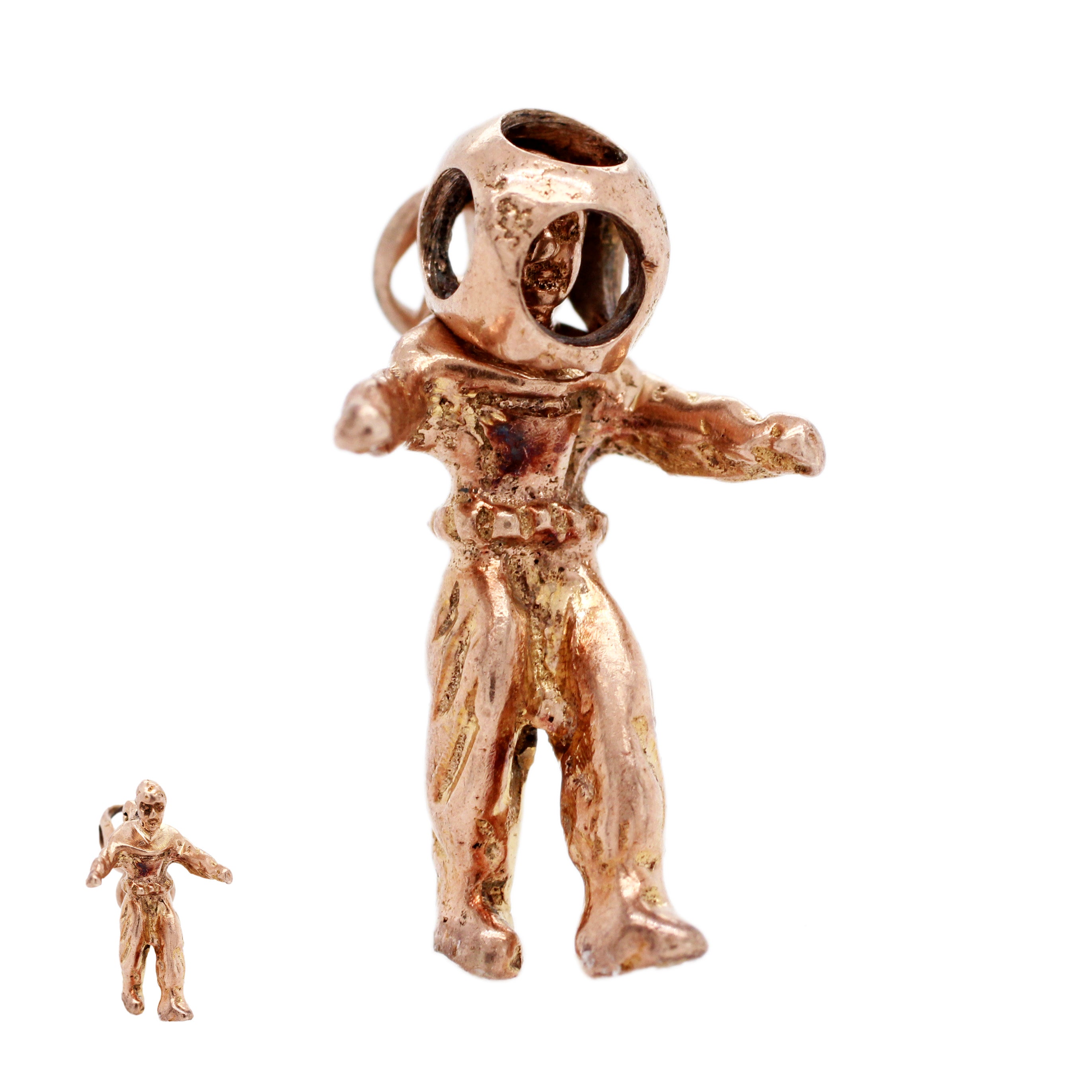 This charm pendant is a scuba diver with a helmet that can be flipped on or off of their head. A necklace can be placed either through the bail to keep the helmet on, or through the helmet of the diver to reveal the face.