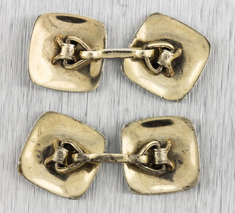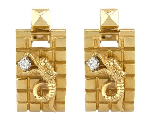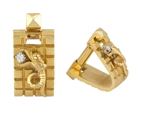 Men's Heavy Vintage Estate 14K Yellow Gold 0.08ctw Diamond Dragon Cufflinks