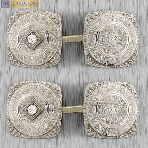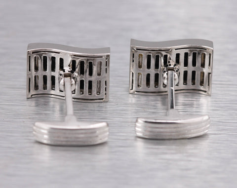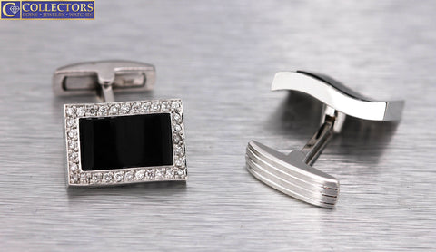 Men's Vintage Estate 14K White Gold 0.64ctw Diamond Onyx Rectangle Cufflinks