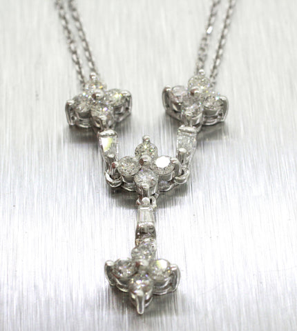 Antique Art Deco 0.45ctw Diamond Filigree Bar Pendant - 14k White Gold Necklace