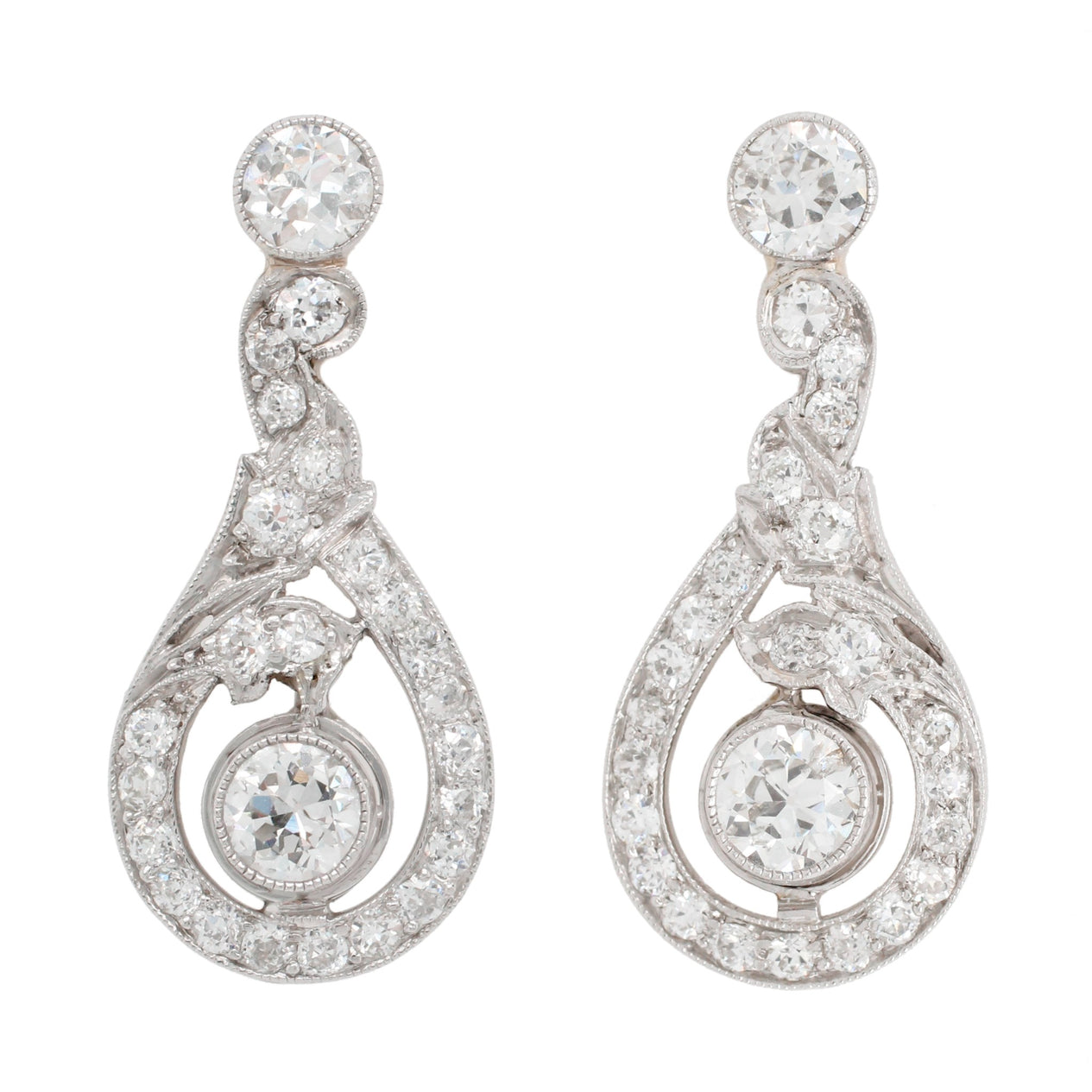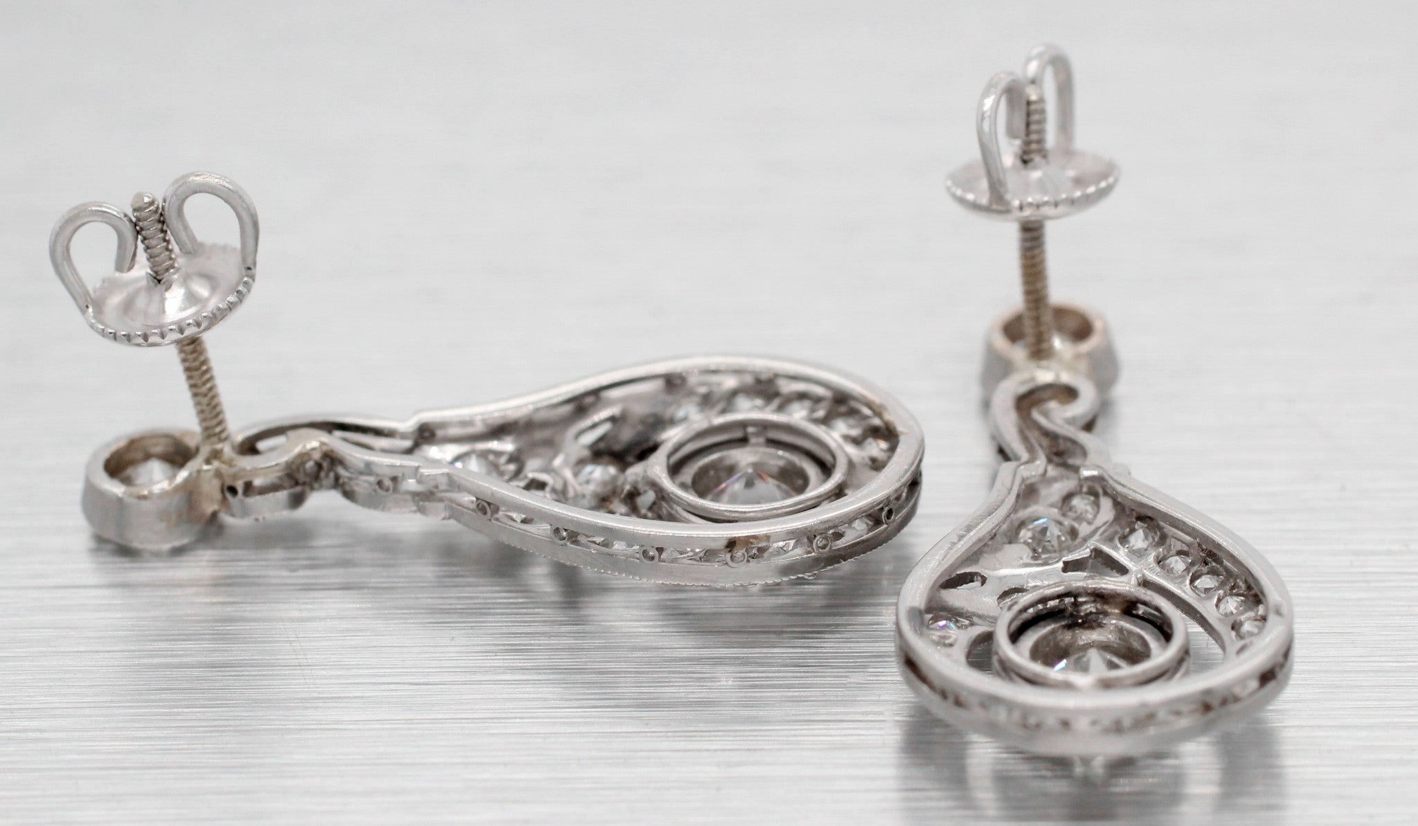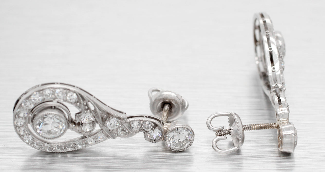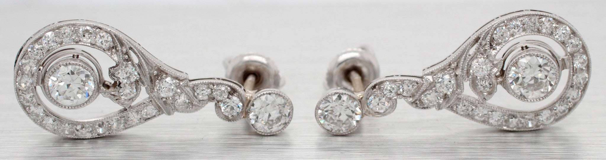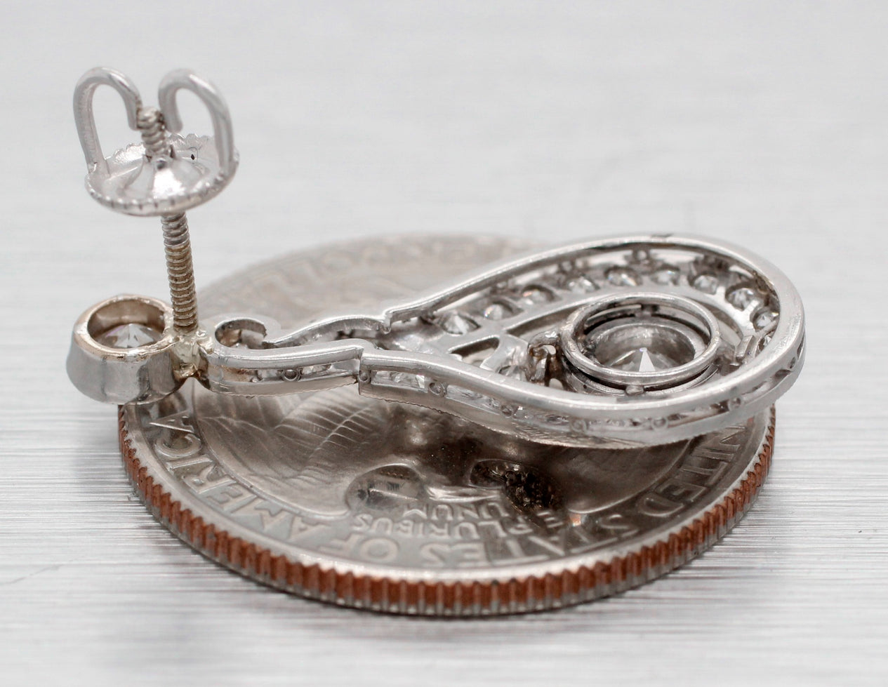 Antique Art Deco 2.00ctw Diamond Curved Statement Stud Earrings - 14k White Gold
