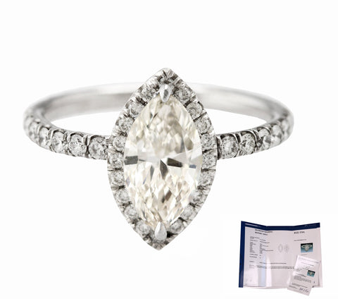 Platinum 1.04 CT I-J SI1 Marquise Brilliant Diamond Halo Engagement Ring EGL