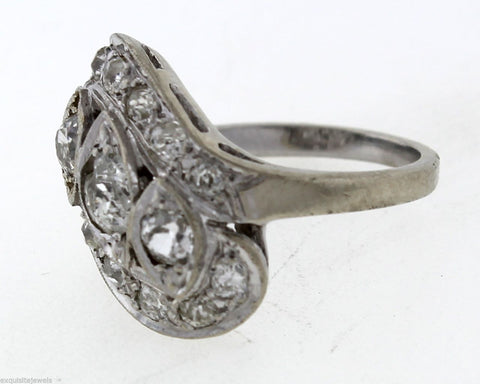 Vintage Estate Art Deco 14K White Gold Flower 0.90ctw Diamond Ring 4.2 Grams