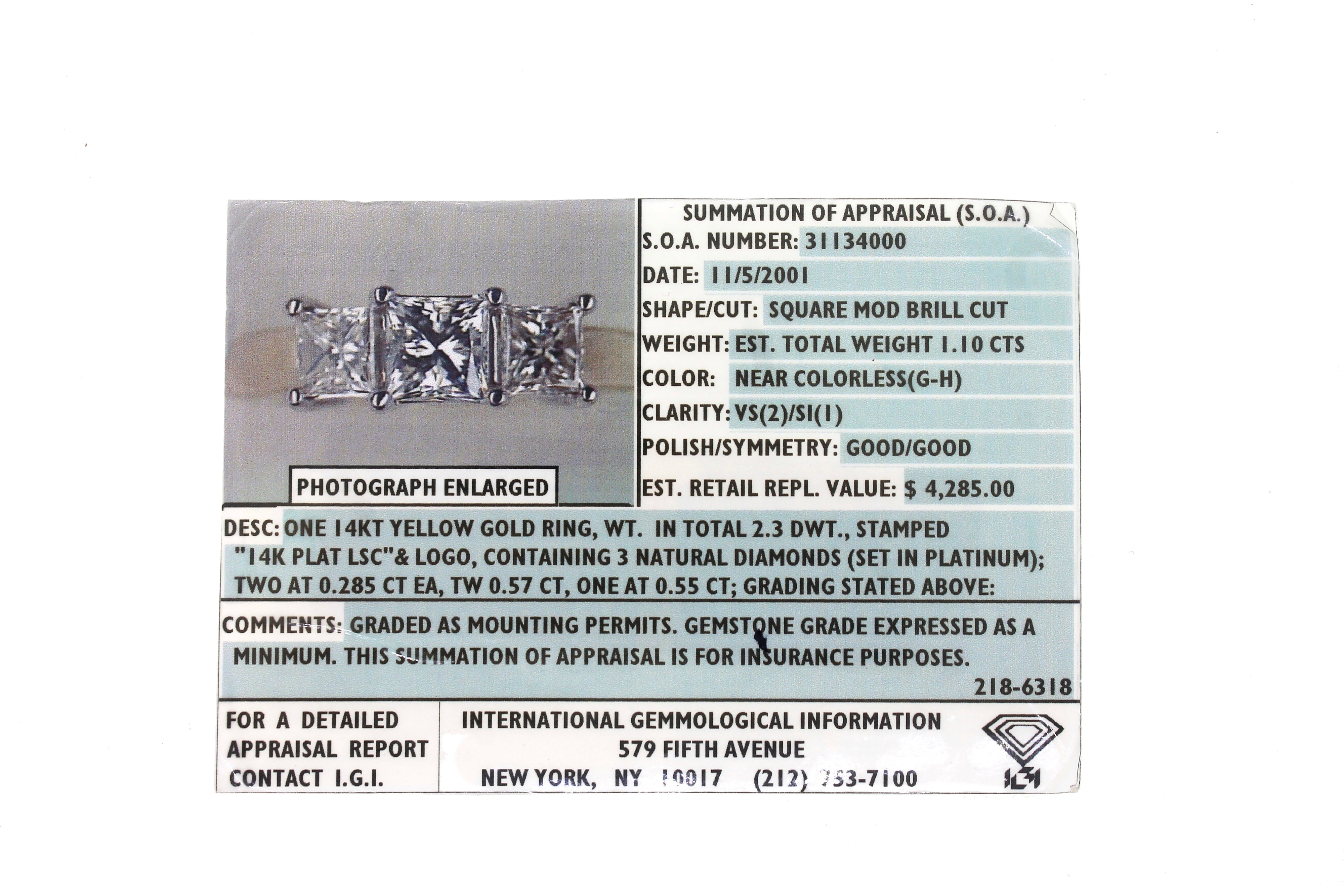 Yes, this item will include the IGI 'Summation of Appraisal' card pictured and an additional Collectors Coins & Jewelry certificate of appraisal and authenticity as per buyer request. |