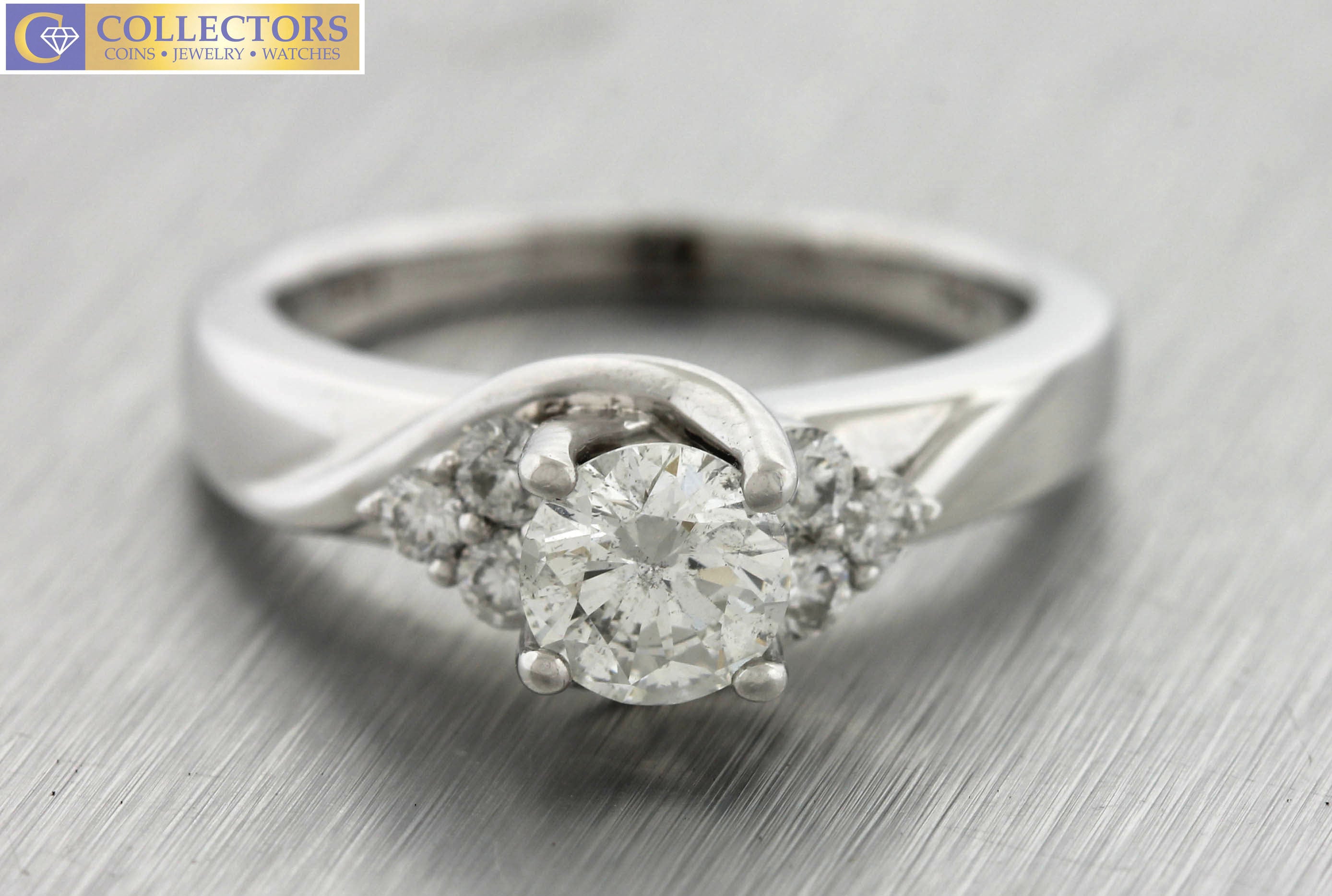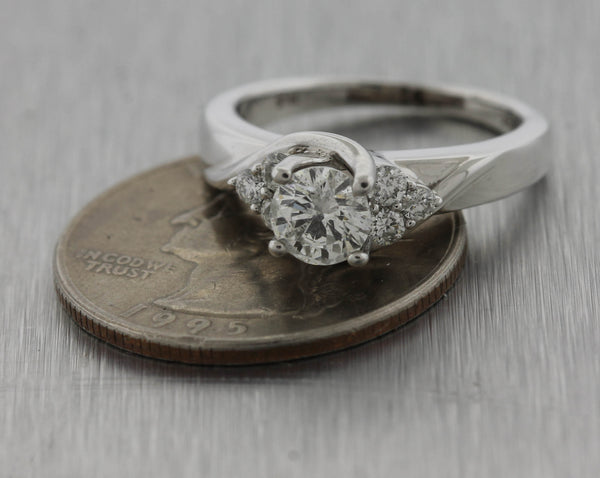 Ladies Vintage Estate 14K White Gold 0.93ctw Diamond Engagement Ring