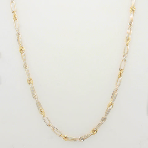 Vintage Rope Bar Chain Necklace - Sterling Silver & 14k Yellow Gold - 18" 15.1g