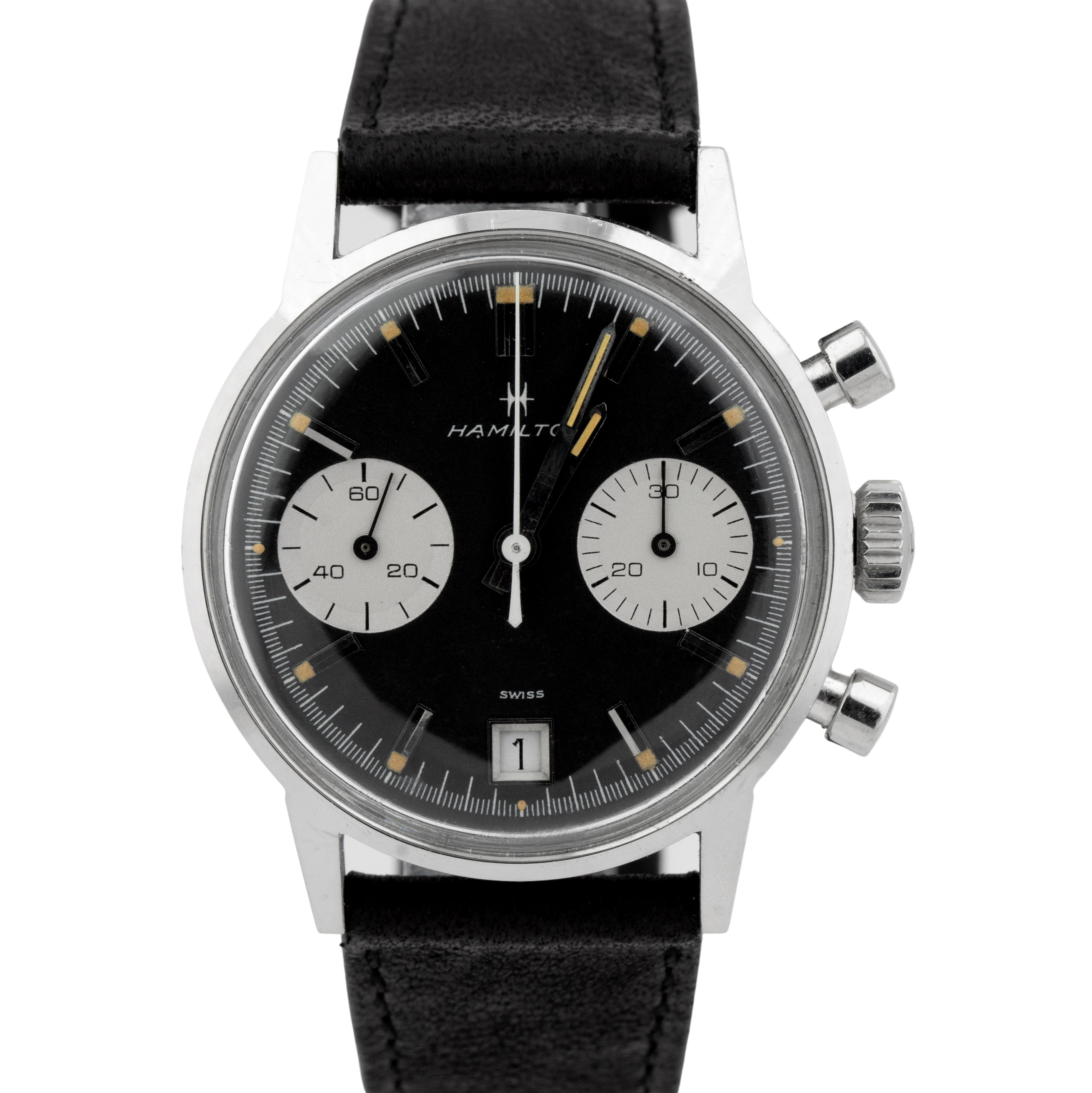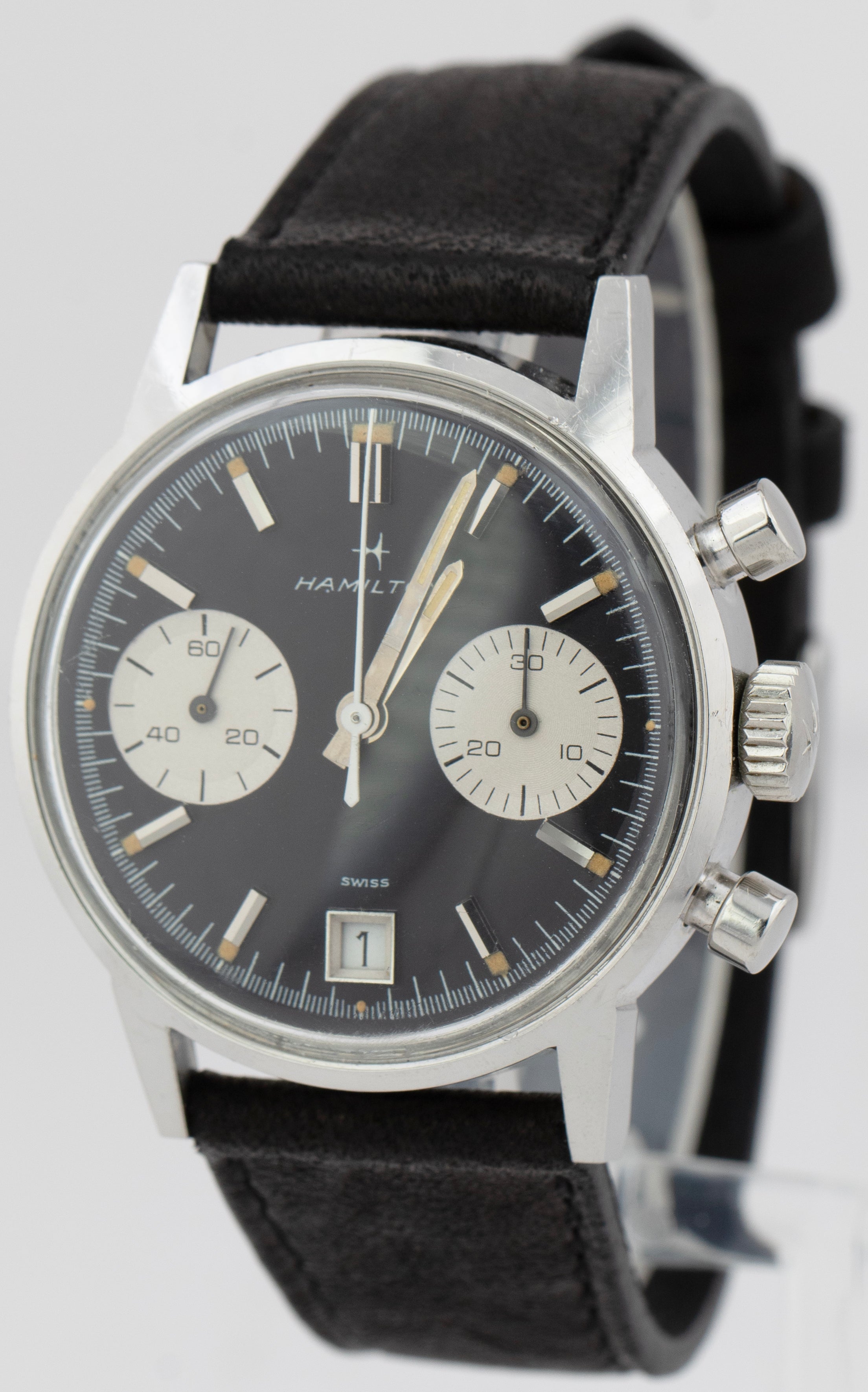 Vintage Hamilton Chronograph Black White Patina Steel 36mm Automatic Watch 7823