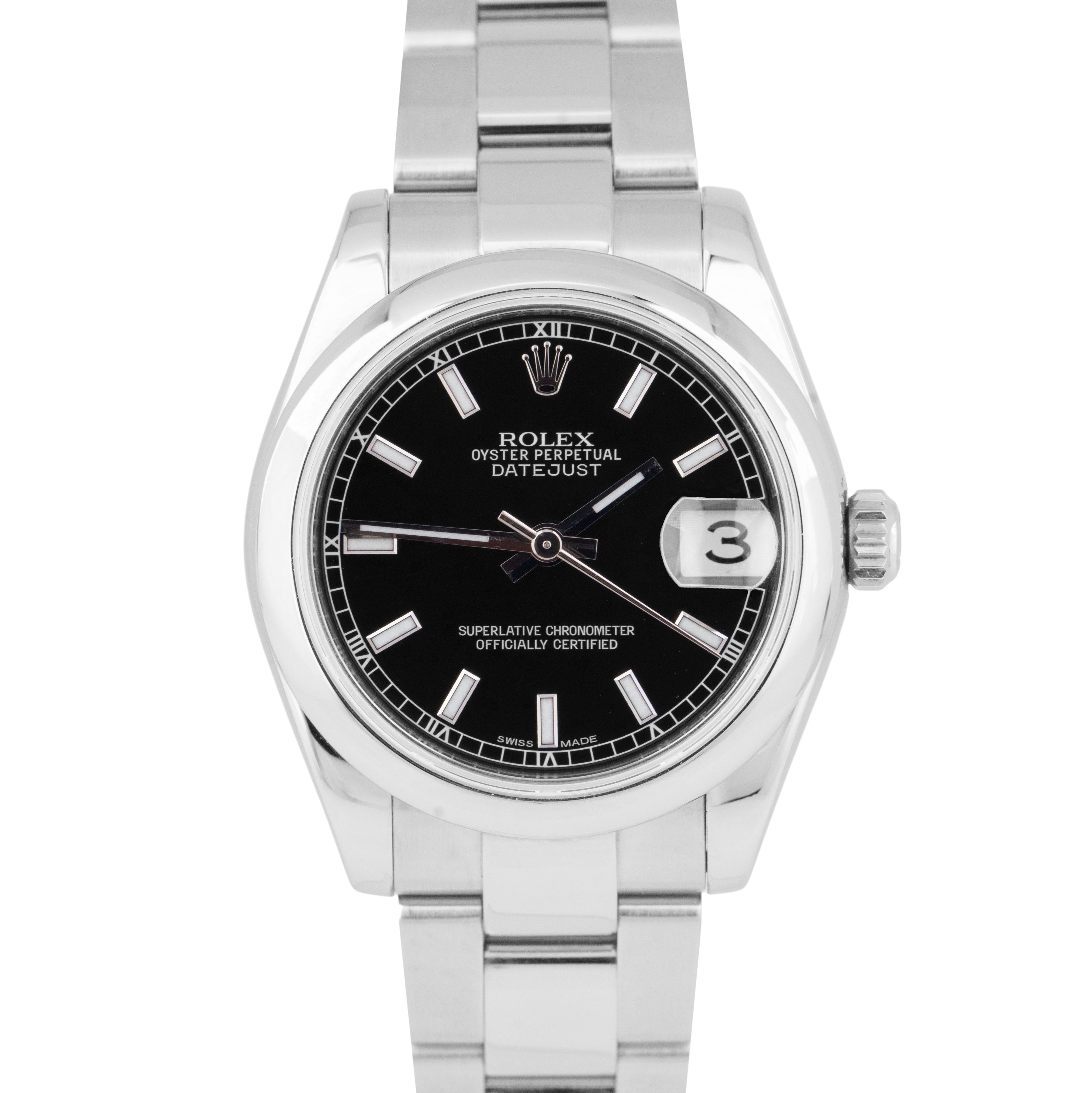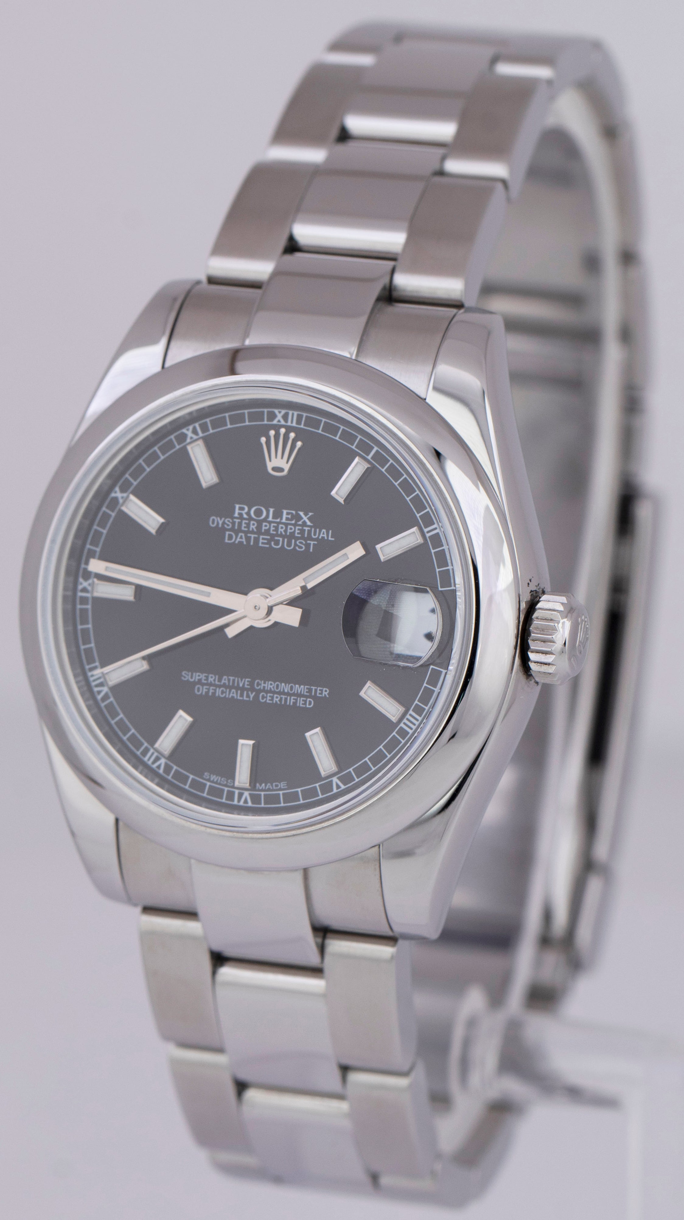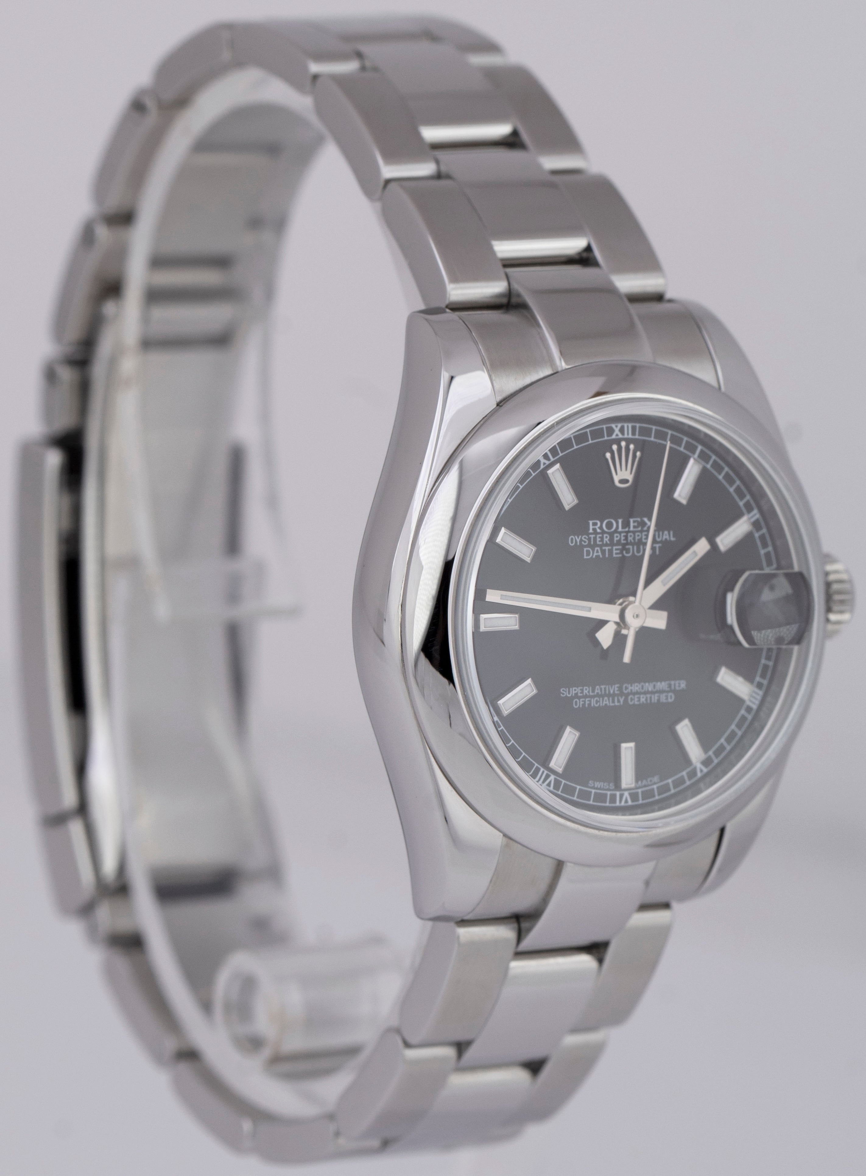 MINT Ladies Rolex DateJust Black 31mm Oyster Smooth Stainless Steel Watch 178240
