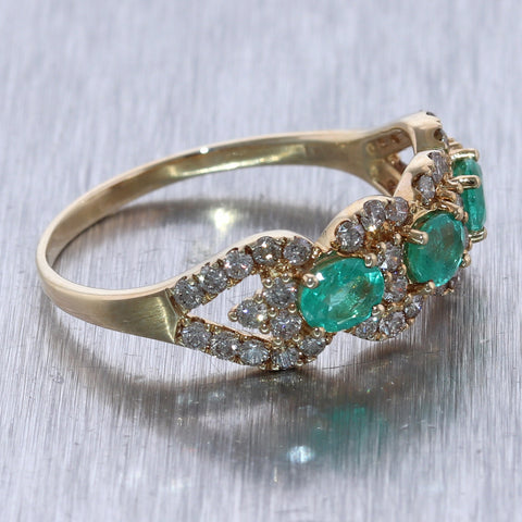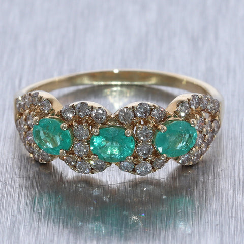Exquisite Ladies 14K White Gold 4.65ctw Emerald Diamond Flower Cocktail Ring