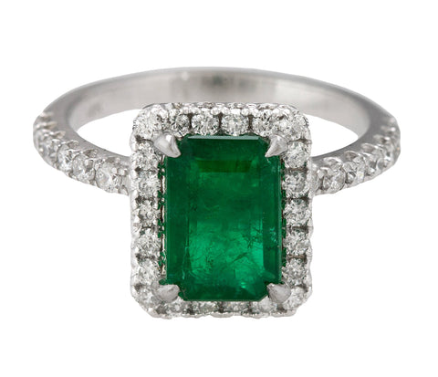 Lovely Ladies 14K White Gold 1.79 CT Emerald Diamond Halo Cocktail Ring