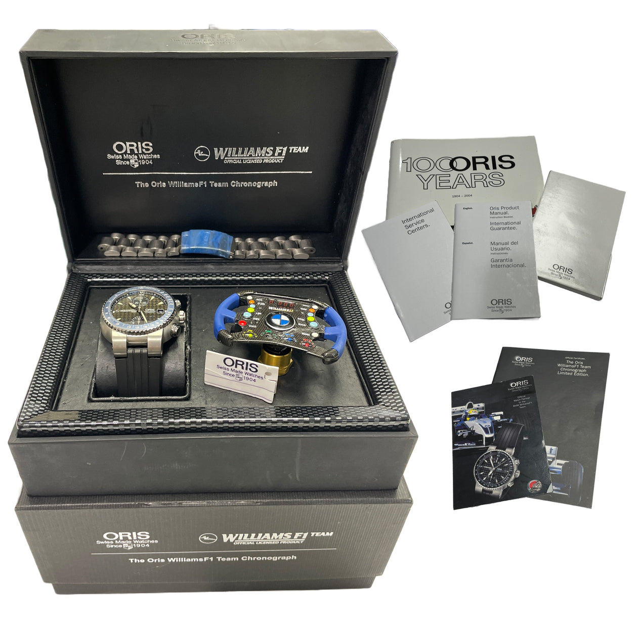 PAPERS Oris F1 Williams BMW Team Chronograph 7556 Titanium 44mm LTD Watch BOX