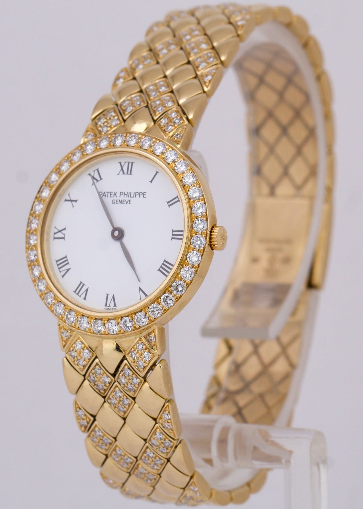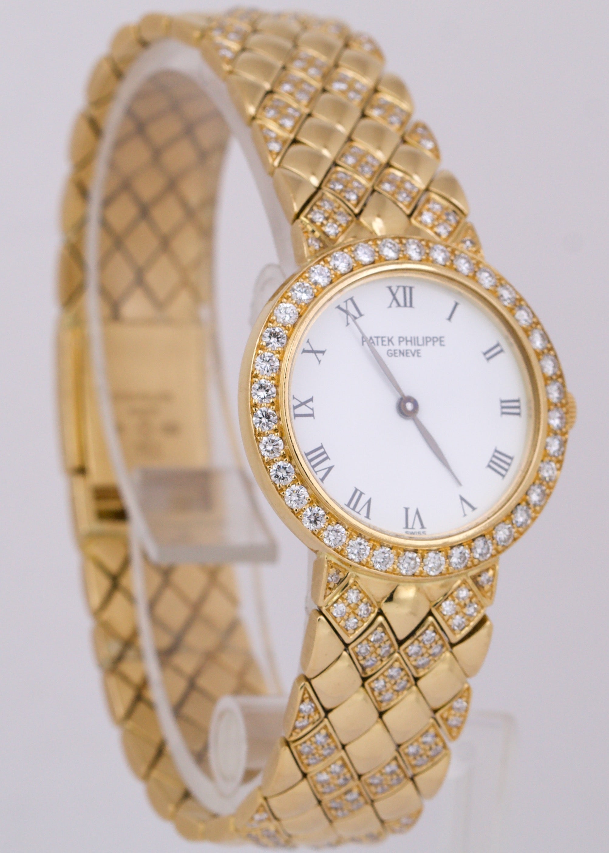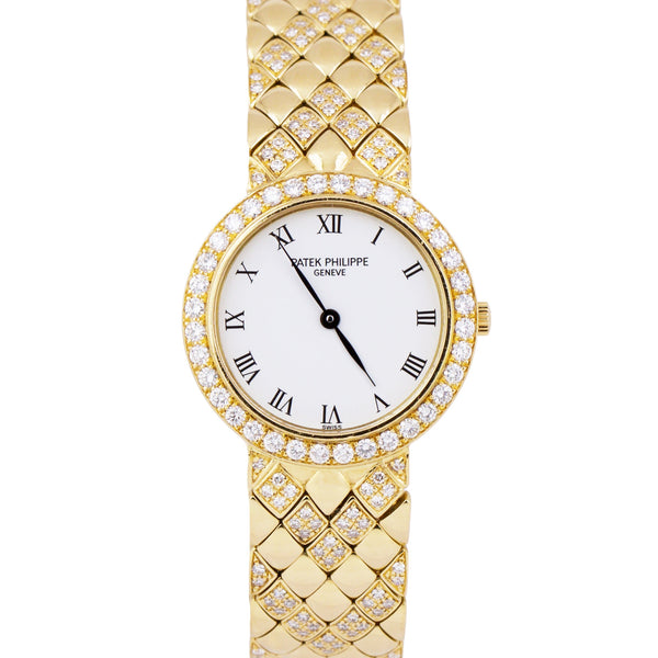 Patek Philippe Calatrava White DIAMOND 18K Yellow Gold 25mm Quartz Watch 4820