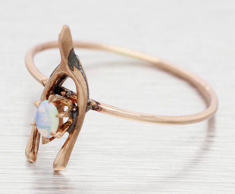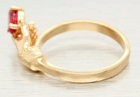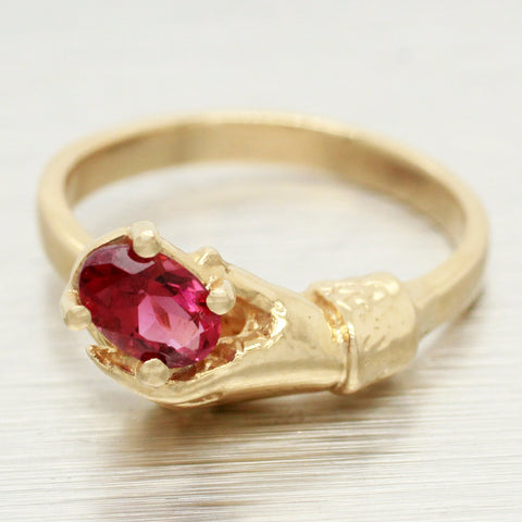 Antique Art Nouveau Angel Skin Coral Solitaire Ring - 14k Yellow Gold Size 8.75
