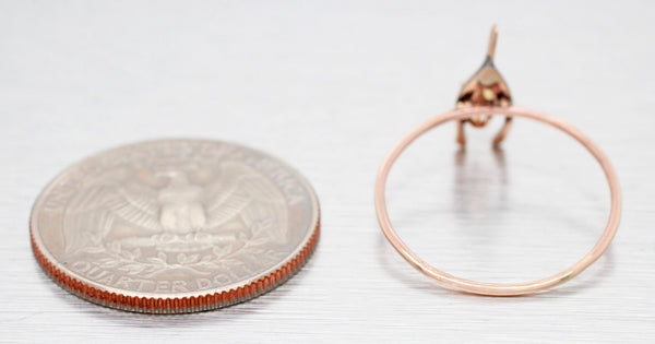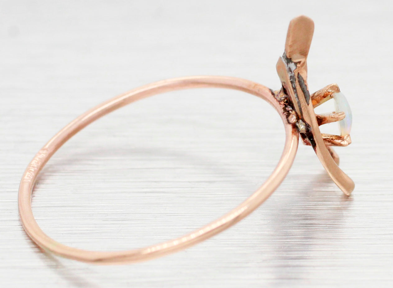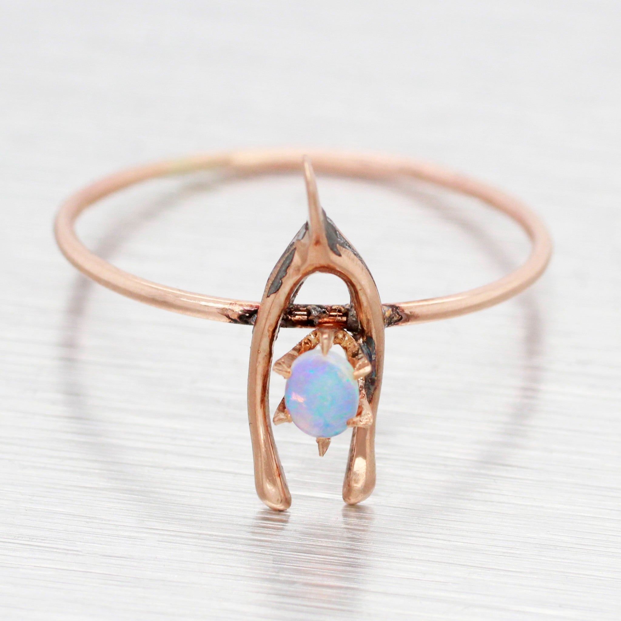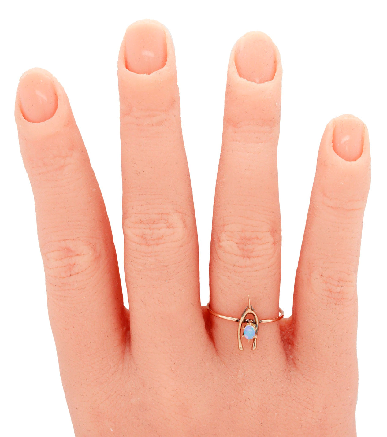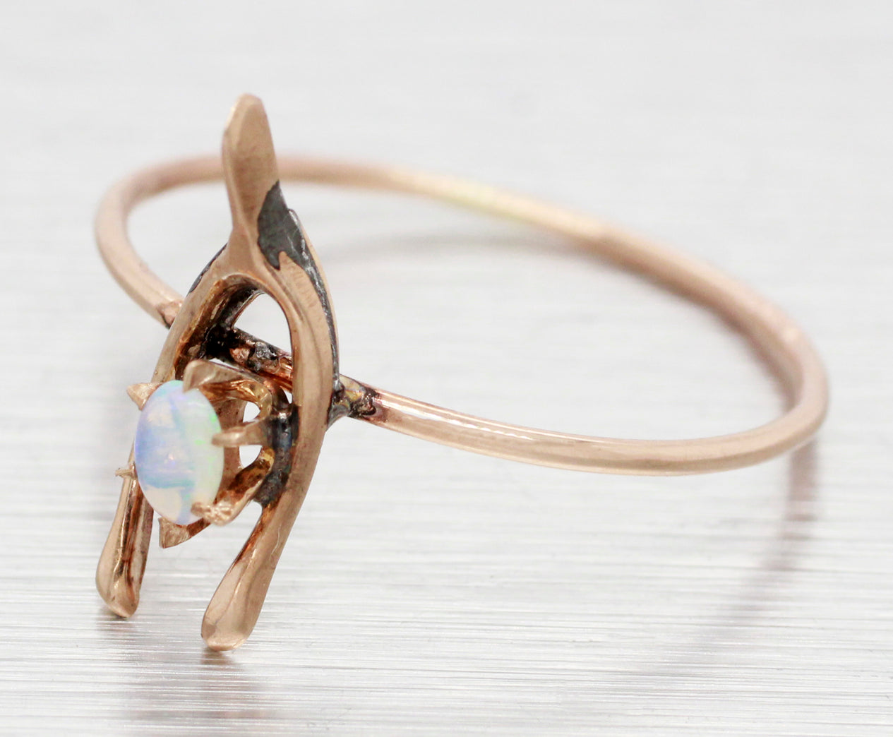Antique Art Deco Blue Opal Wishbone Ring - 14k Rose Gold  - Size 8.25