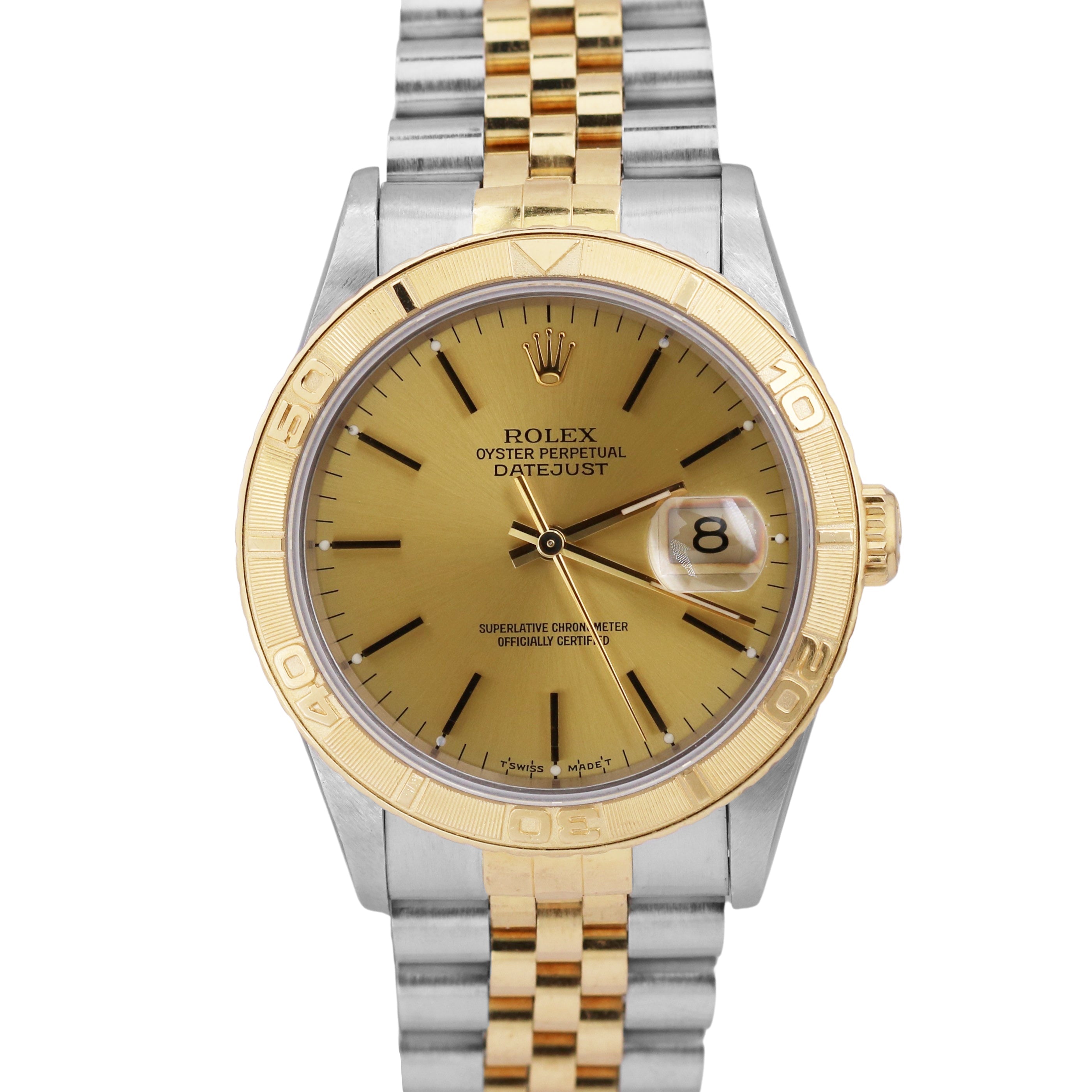 UNPOLISHED Rolex DateJust Turn-O-Graph Thunderbird 36mm CHAMPAGNE 18K Gold 16263