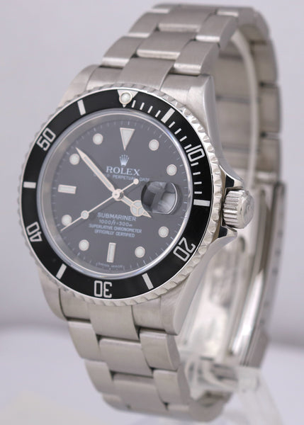 PAPERS Rolex Submariner Date Stainless Steel Black NO-HOLES 40mm 16610 Watch BOX