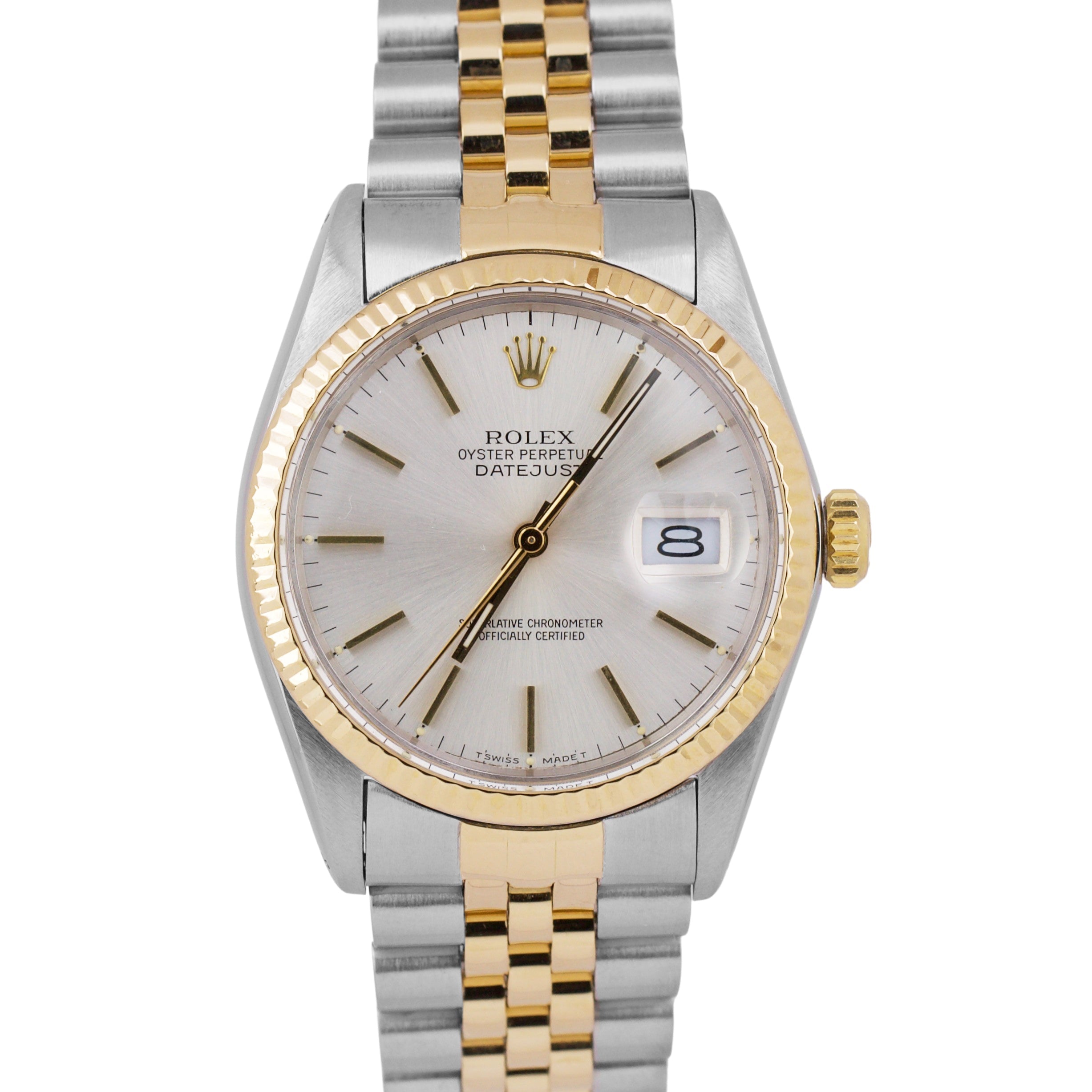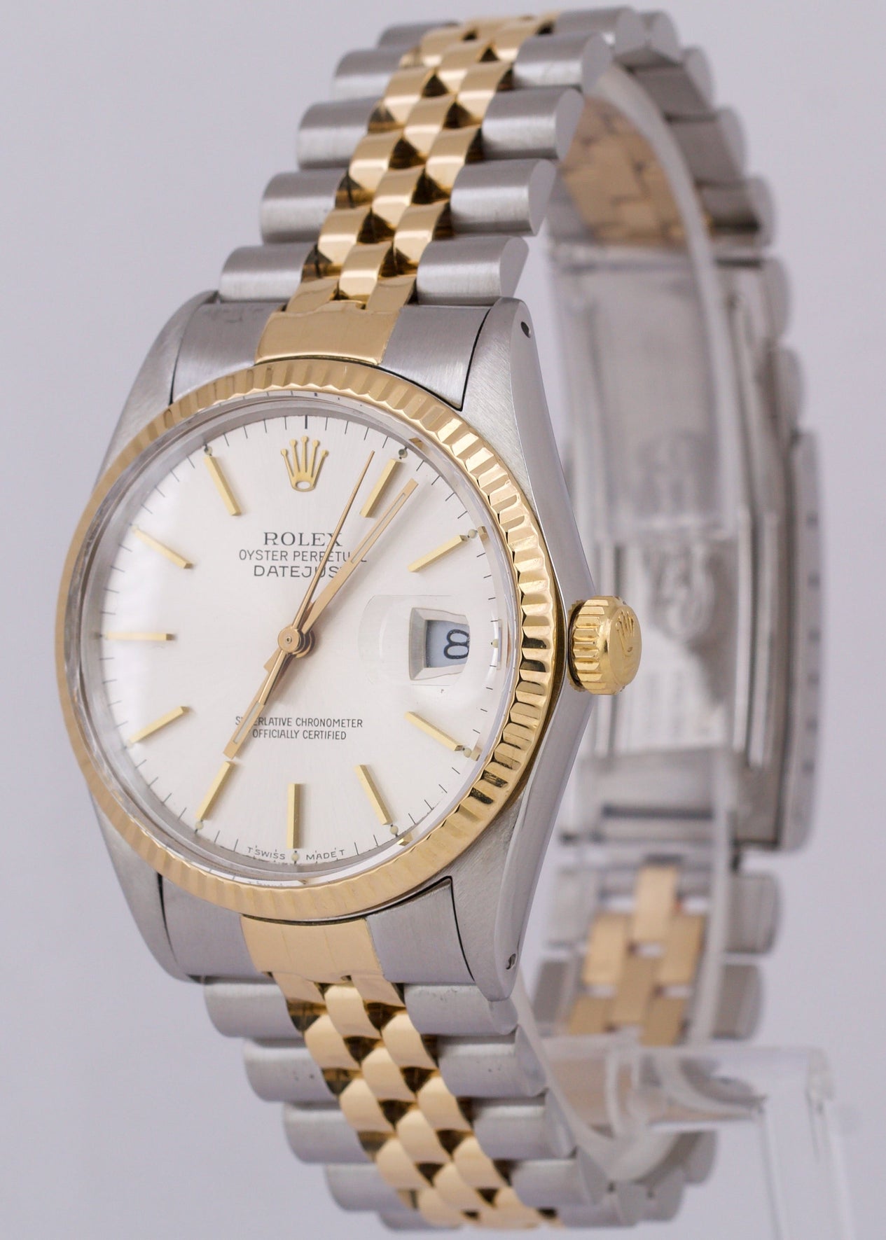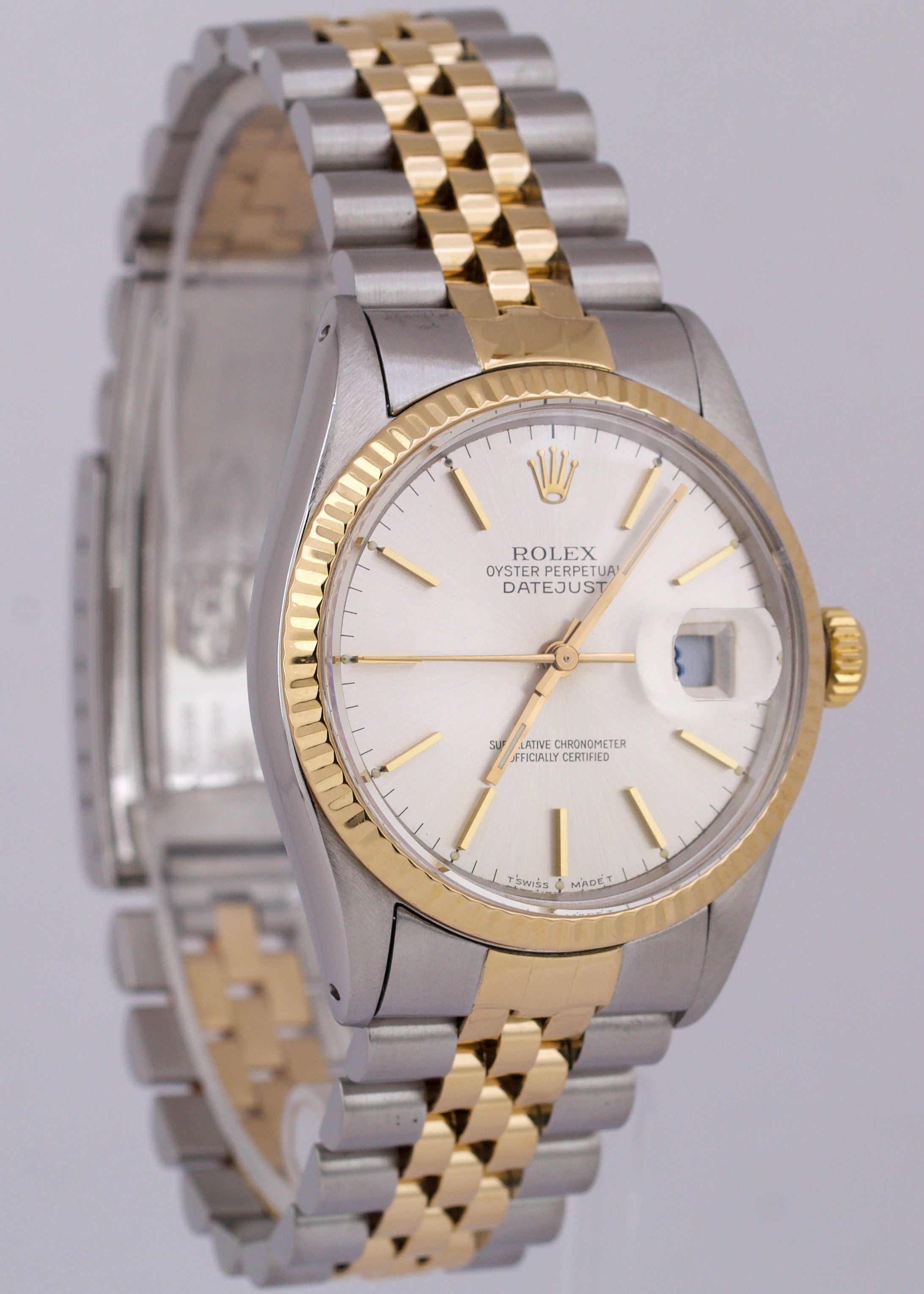Rolex DateJust 36mm SILVER 18K Yellow Gold Fluted Stainless Steel JUBILEE 16013