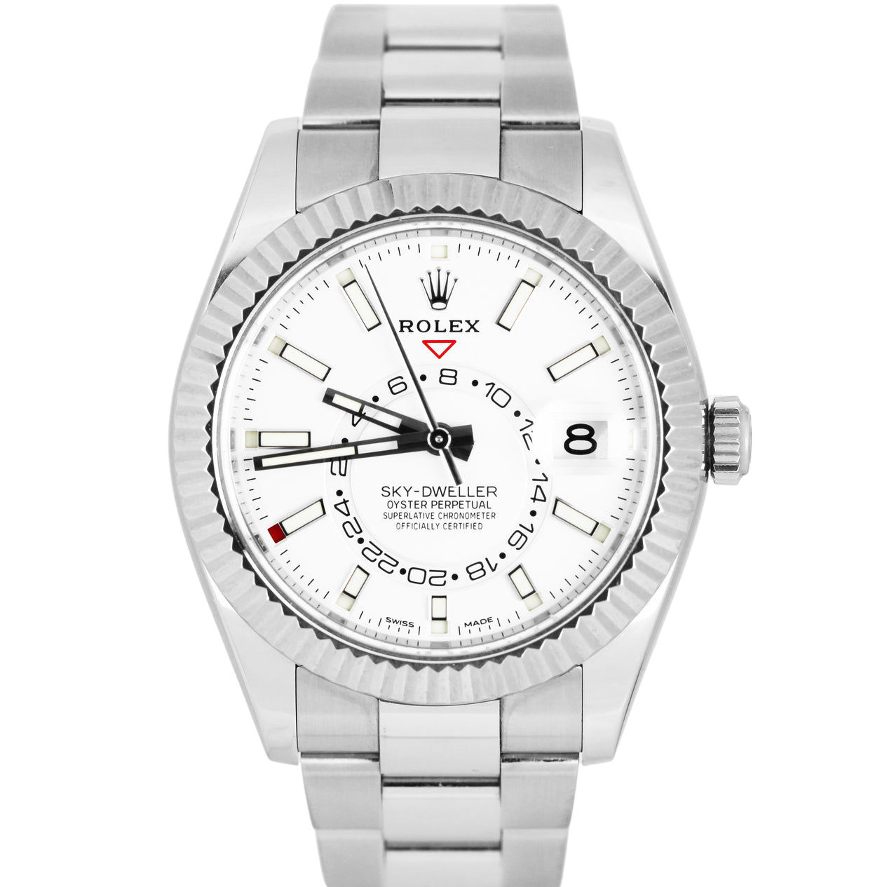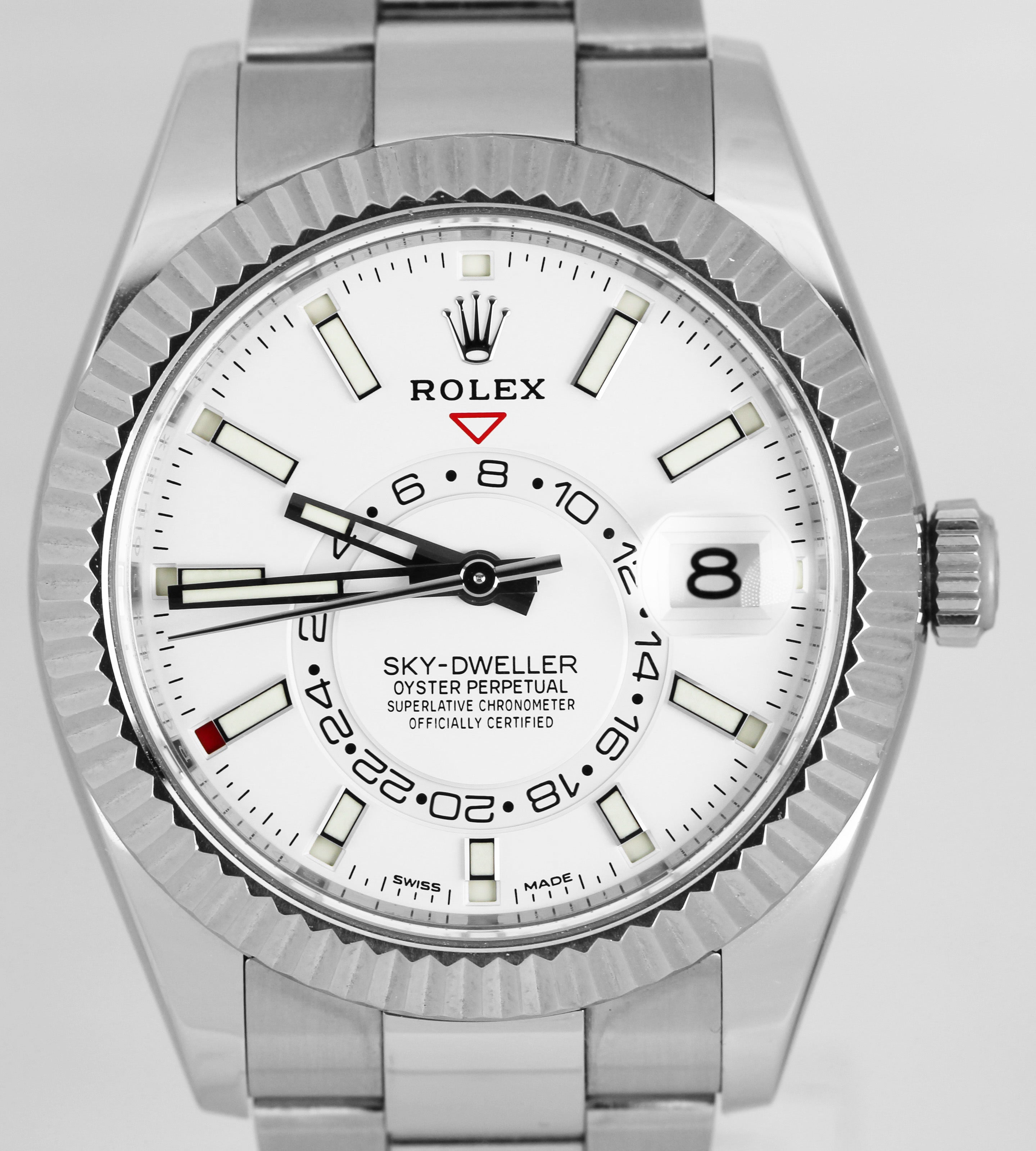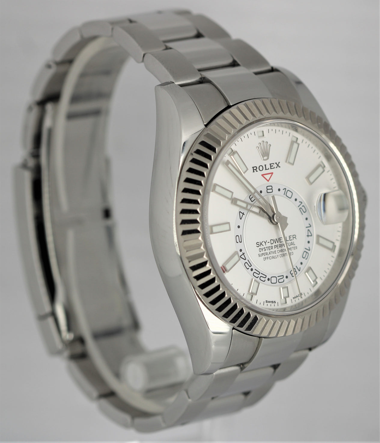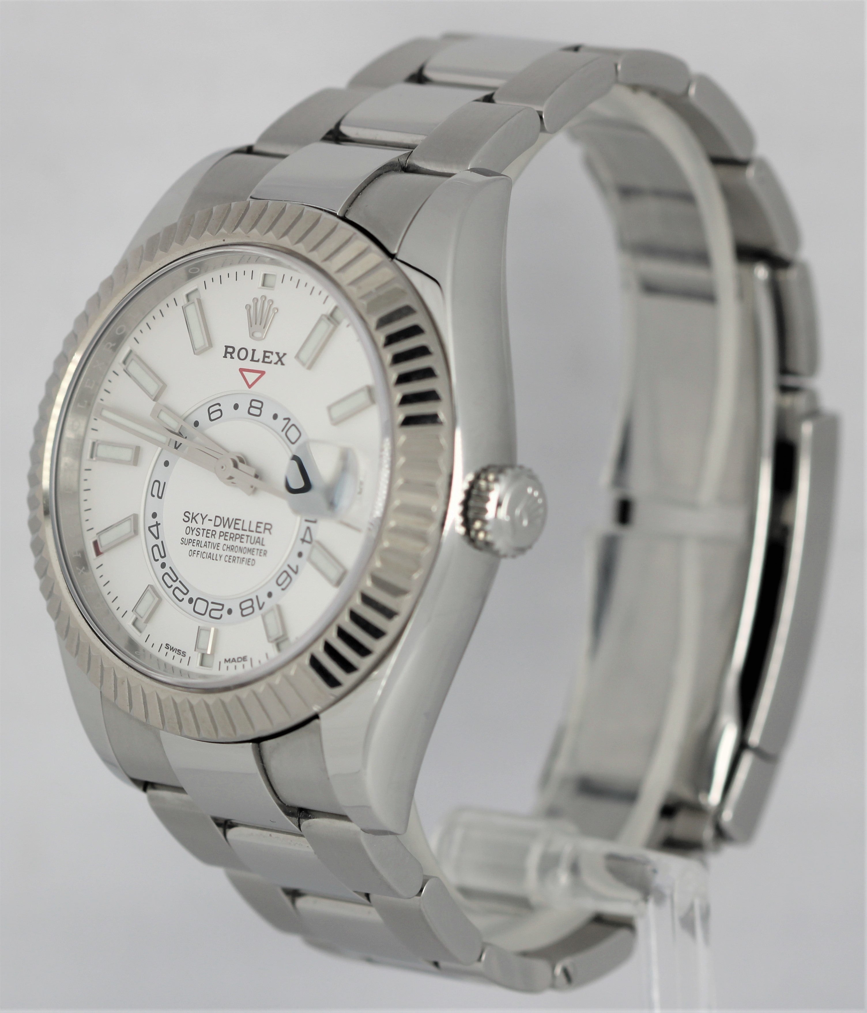 UNPOL. Rolex Sky-Dweller Stainless Steel 18k Fluted White 42mm 326934 Watch