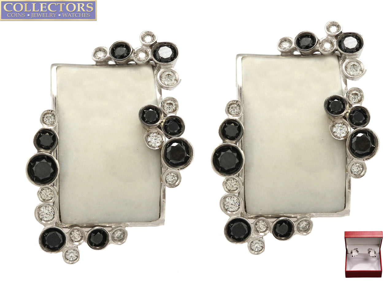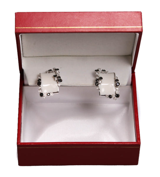 Moraglione Italian Abstract 18K 750 White Gold 0.74ctw Diamond Enamel Earrings