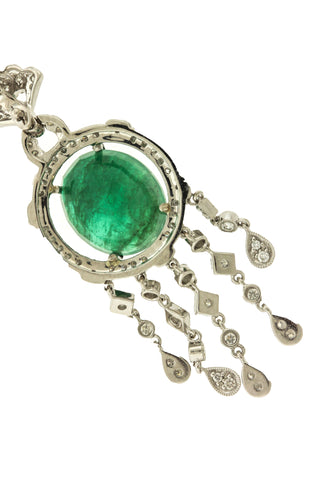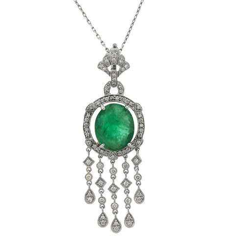 Ladies Vintage Estate 18K White Gold 6.63ctw Emerald Diamond Dangling Necklace