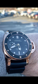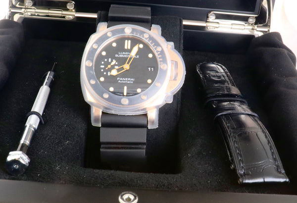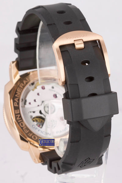 | Band | Original Panerai Black Rubber Strap with an 18K Rose Gold Tang Buckle |