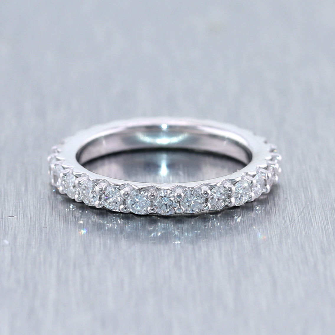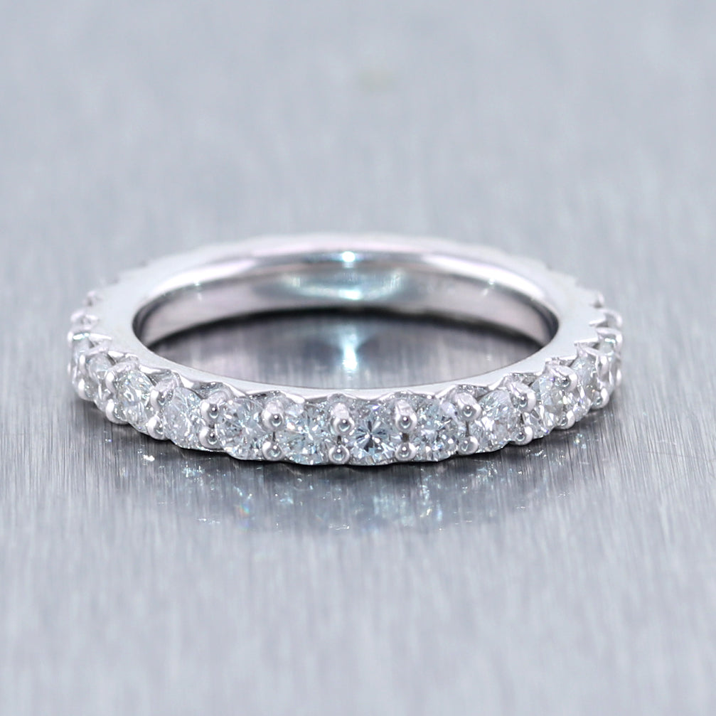 For your consideration, an authentic 14k White Gold 1.00ctw Diamond Eternity Wedding Band Ring. This piece will come in a lovely ring box for a perfect presentation and our unconditional 30 day money back return policy. K2