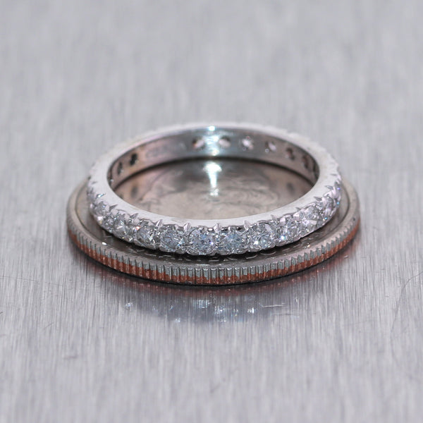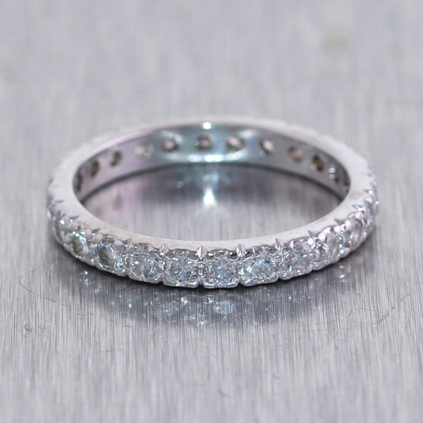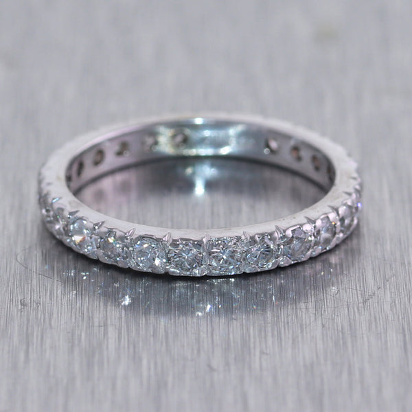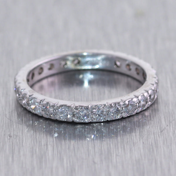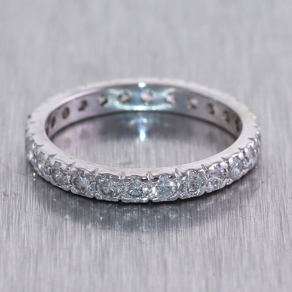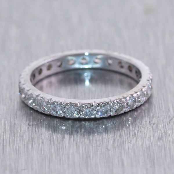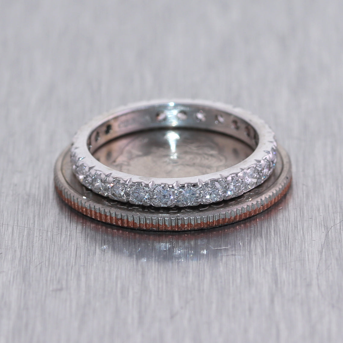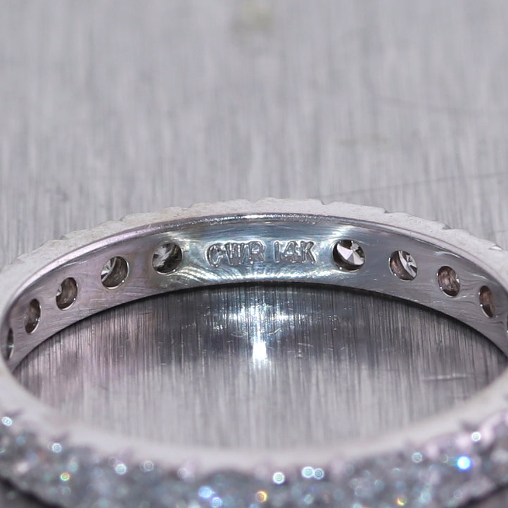 For your consideration, an authentic 14k White Gold 1ctw Round Cut Diamond Eternity Band Ring. This piece will come in a lovely ring box for a perfect presentation and our unconditional 30 day money back return policy. E3