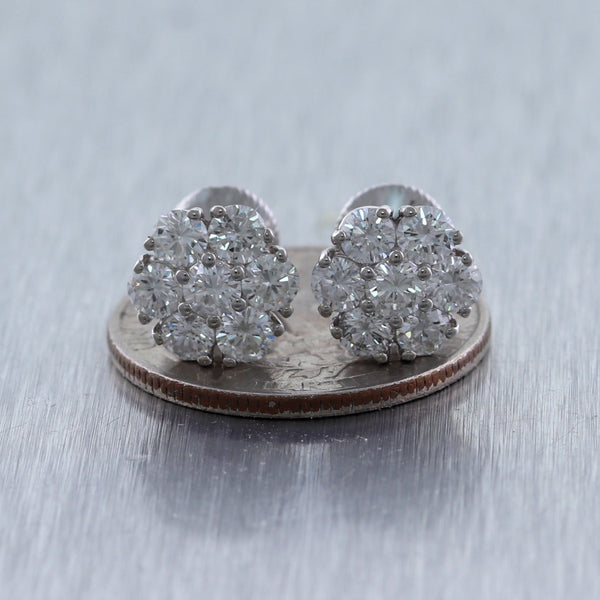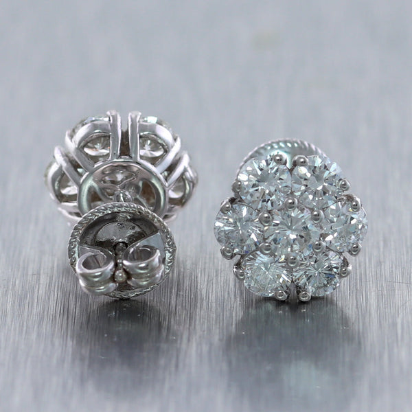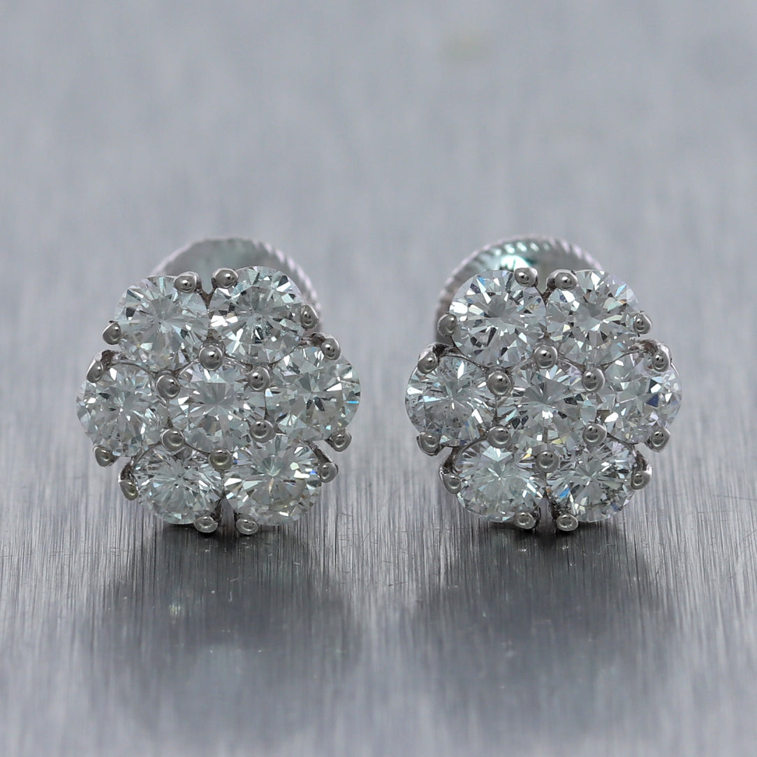 For your consideration, an authentic 14k White Gold 2.25ctw Diamond Cluster Stud Earrings. They will come professionally packaged in a beautiful gift presentation box and our 30day money-back return policy. L1