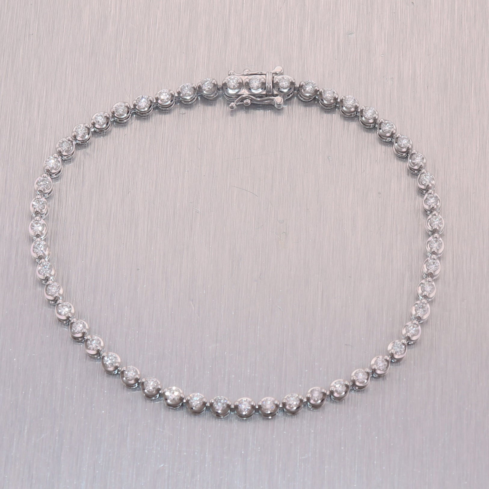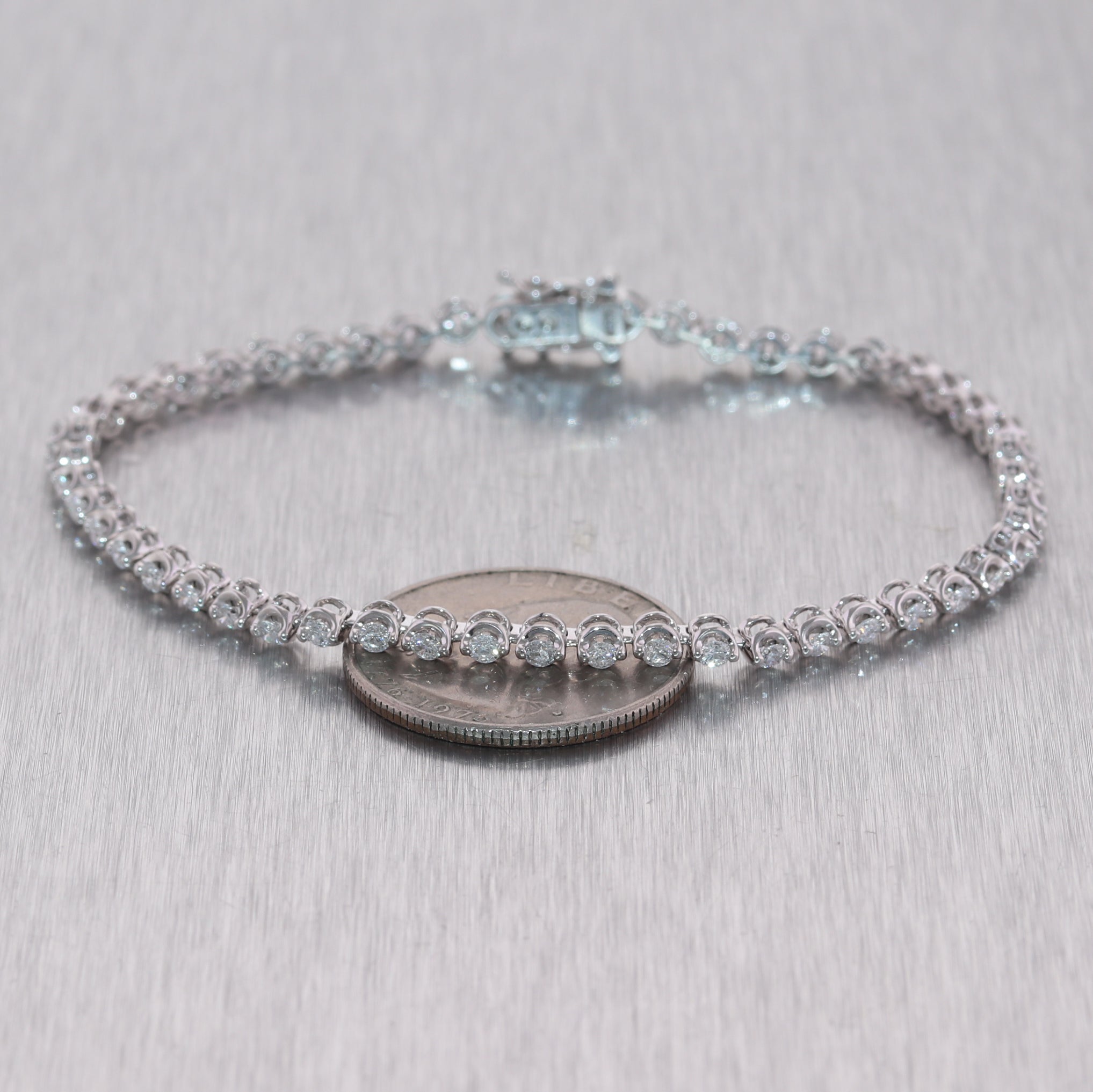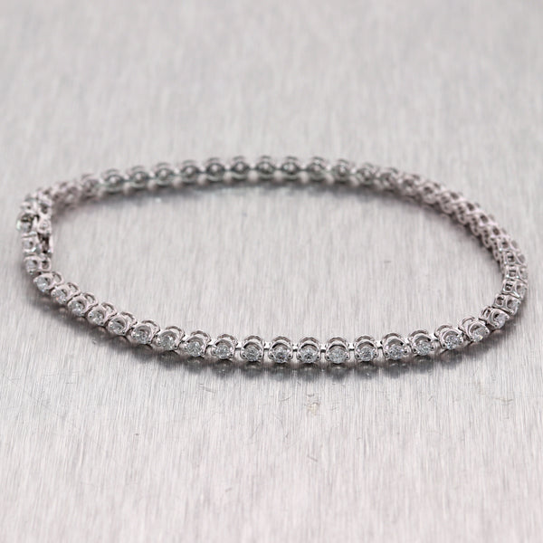 For your consideration, an authentic 14k White Gold 2ctw Diamond Tennis Bracelet. It will come in a lovely bracelet box for a perfect presentation and our unconditional 30day money-back return policy. F2