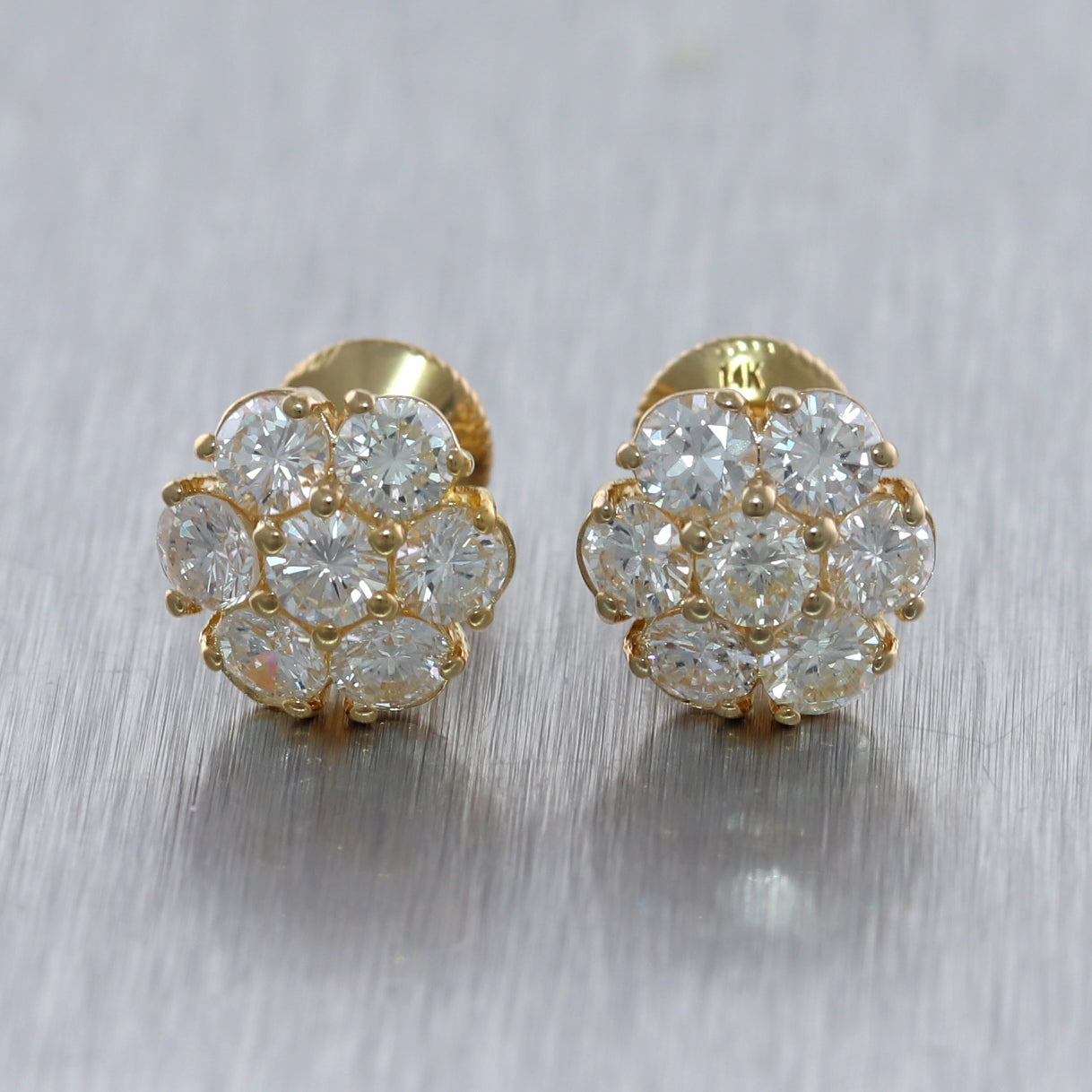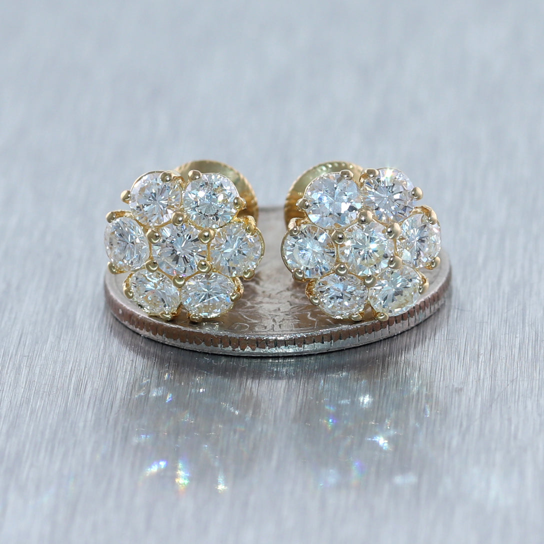 For your consideration, an authentic 14k Yellow Gold 2.75ctw Diamond Cluster Stud Earrings. They will come professionally packaged in a beautiful gift presentation box and our 30day money-back return policy. L1