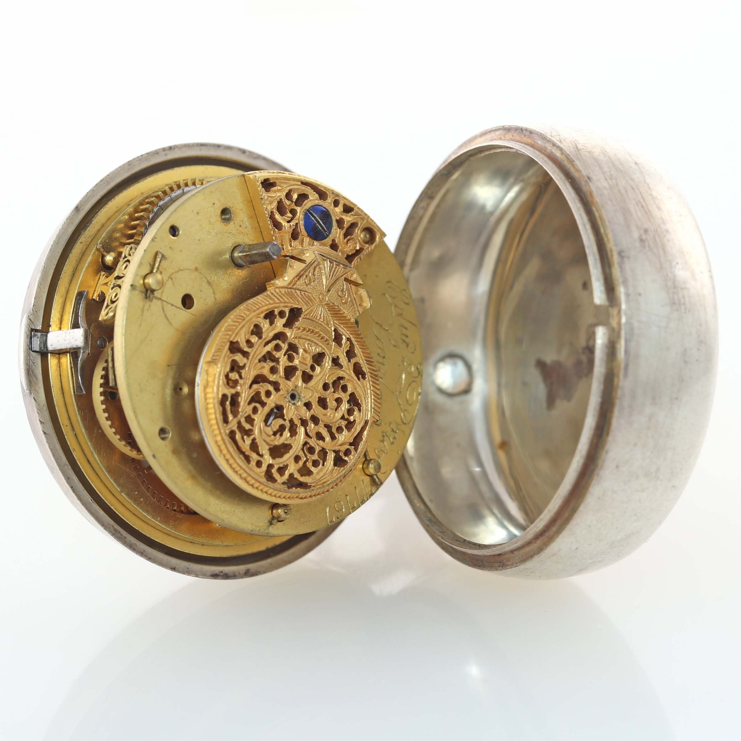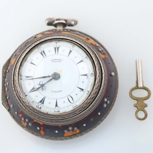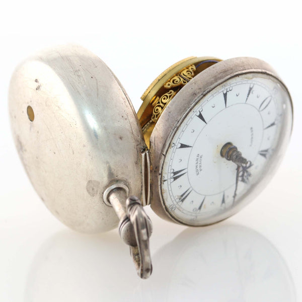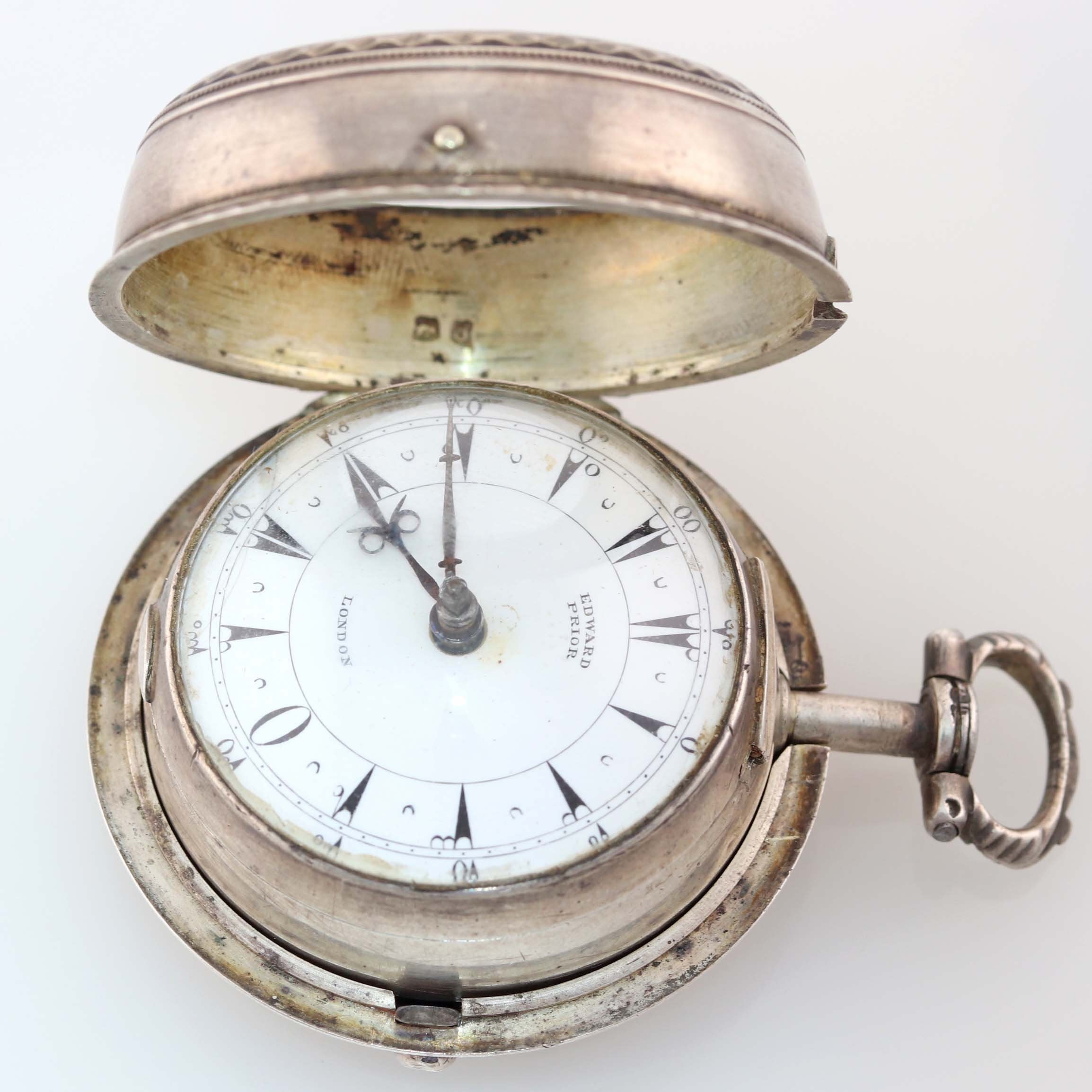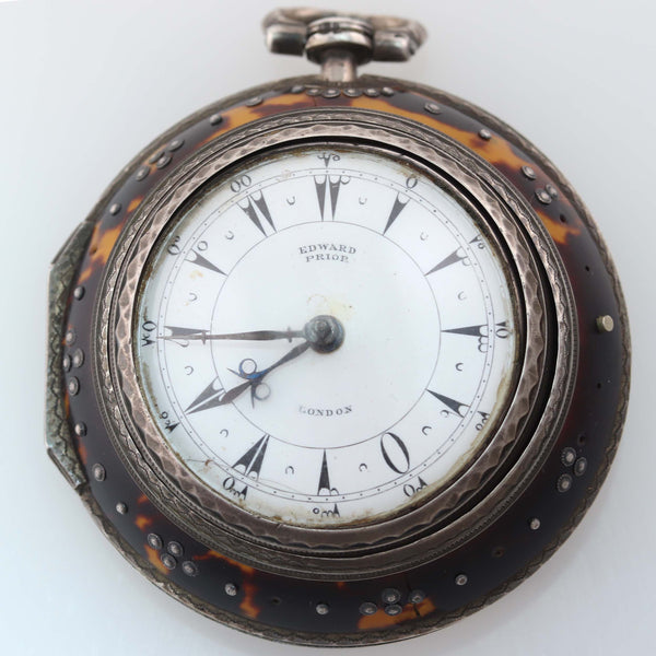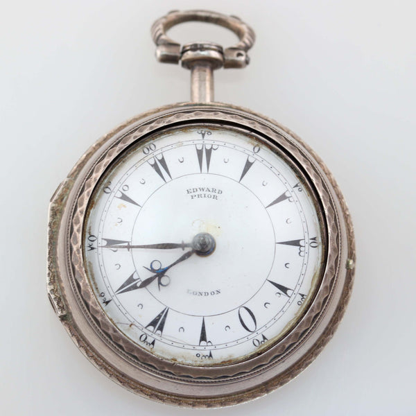 1800's Antique Edward Prior London Silver Triple Case Enamel Verge Fusee Pocket Watch.