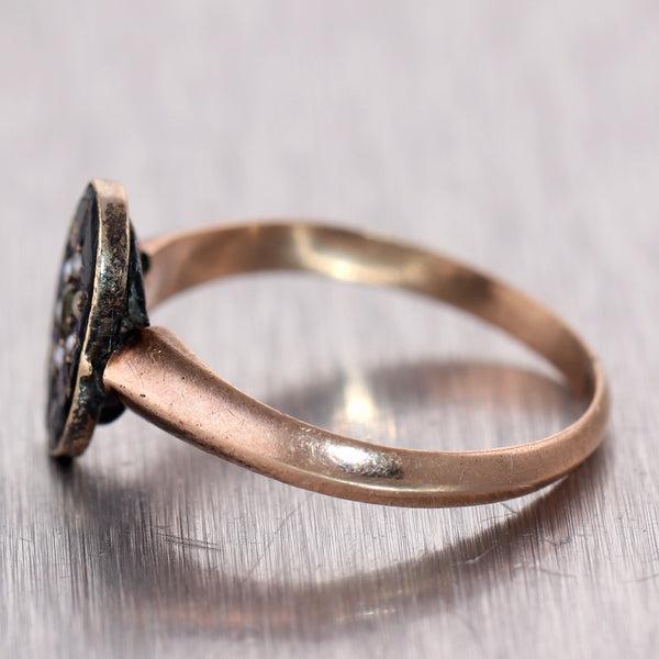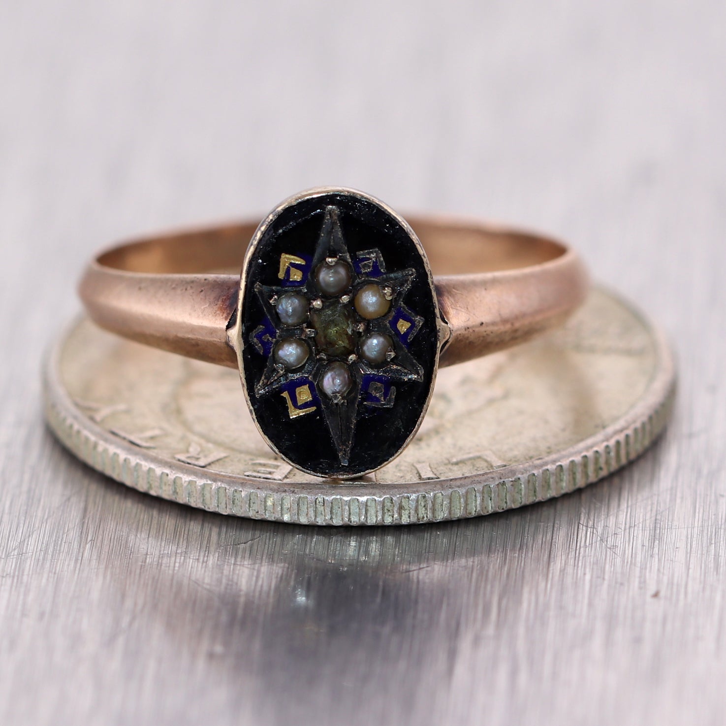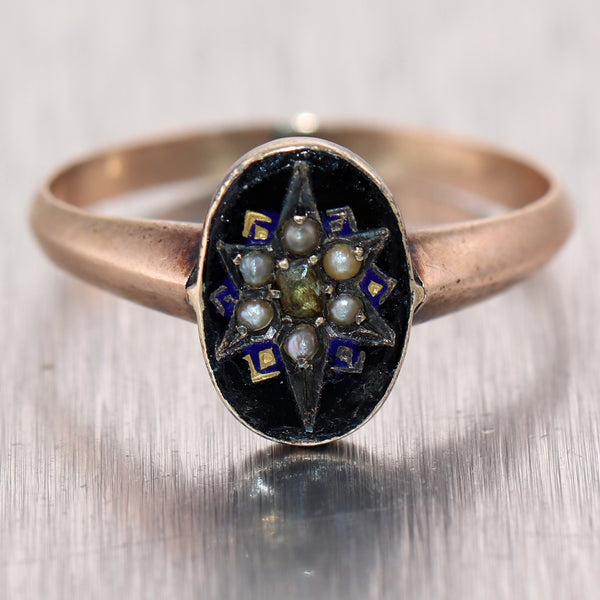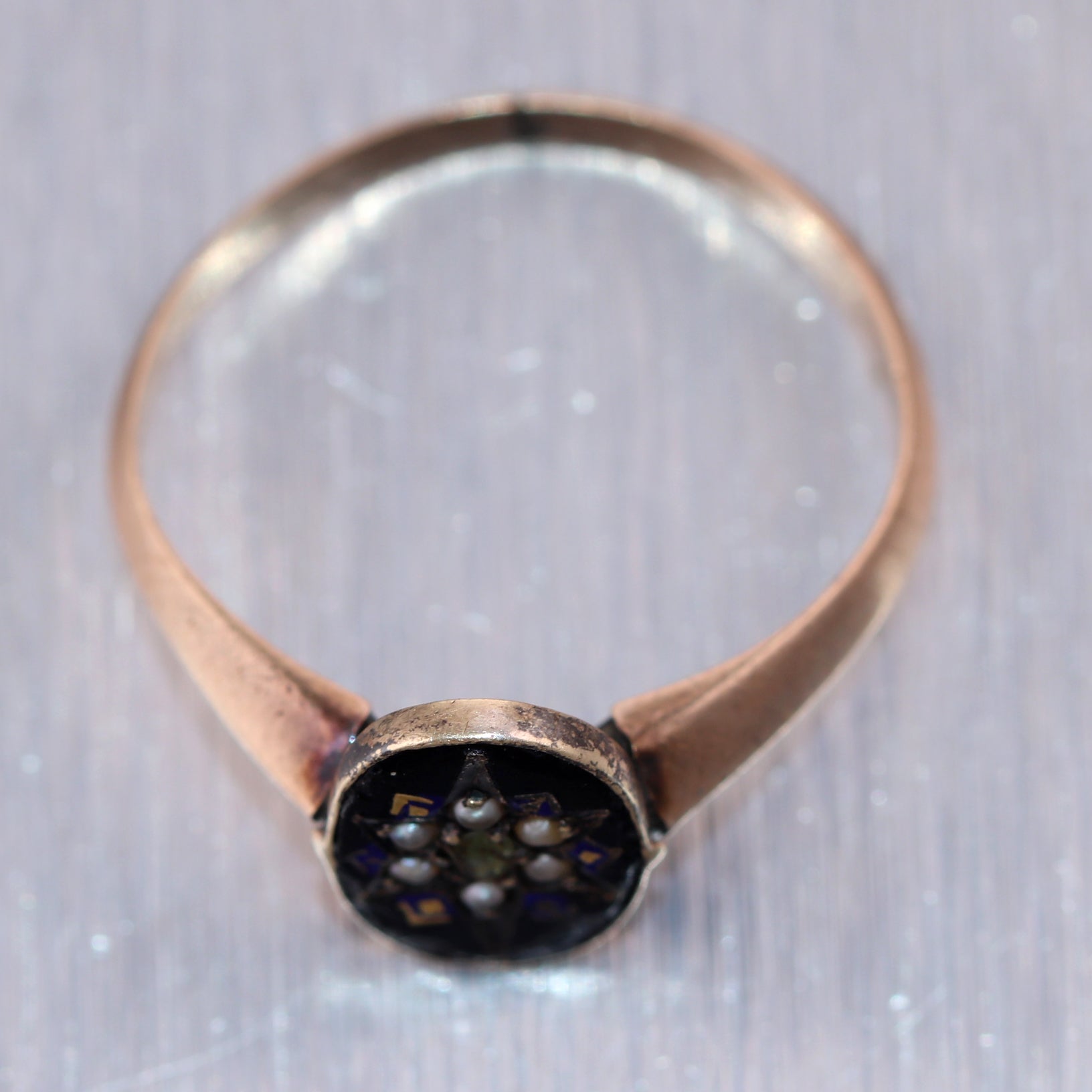 For your consideration, an authentic 1850's Antique Victorian 14k Yellow Gold 0.05ct Diamond & Seed Pearl Ring. It will come in a lovely ring box for a perfect presentation and our unconditional 30 day money back return policy. C1