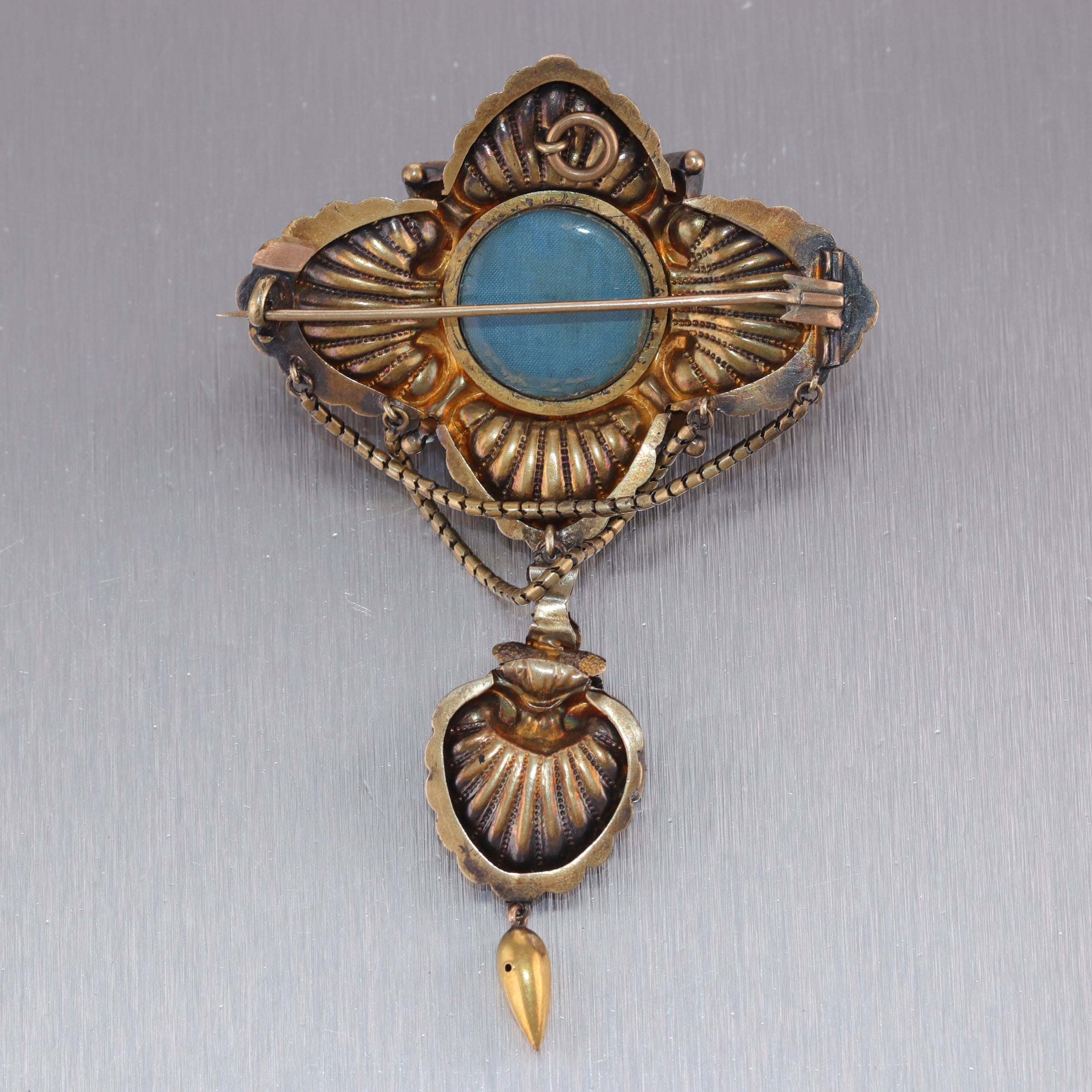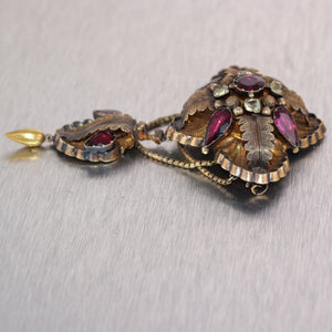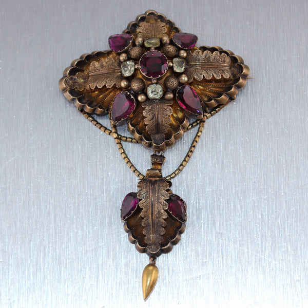 For your consideration, an authentic 1850's Antique Victorian 14k Yellow Gold 6.50ctw Garnet & Paste Brooch Pin. This item will come in a lovely jewelry box for a perfect presentation and our unconditional 30 day money back return policy. H1