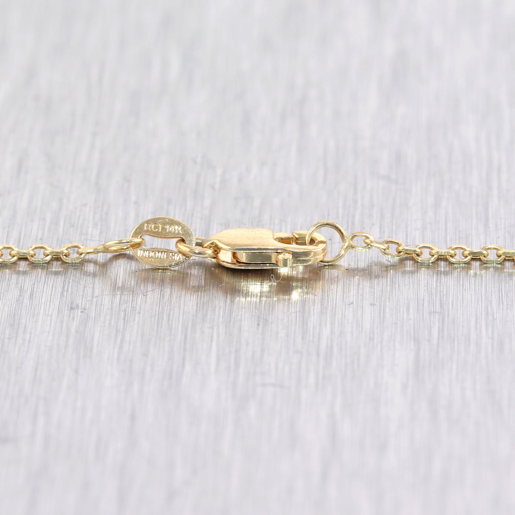 RCI 14k INDONESIA; item has been tested and guaranteed to be solid 14k yellow gold. |