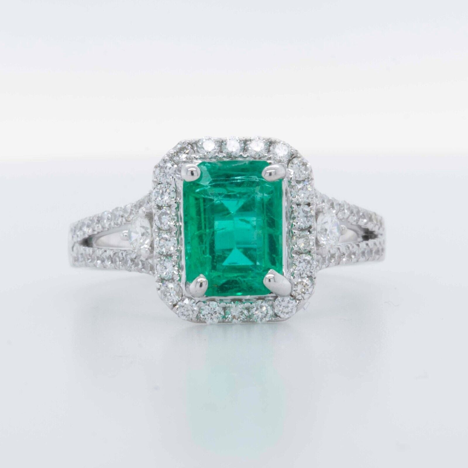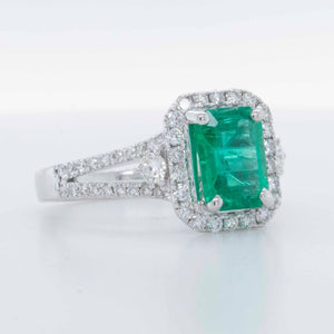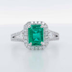 Emerald Cut Emerald, 1.75ct Colombian (8.25mm x 5.95mm) Round Diamonds, 0.50ctw G COLOR / VS CLARITY |