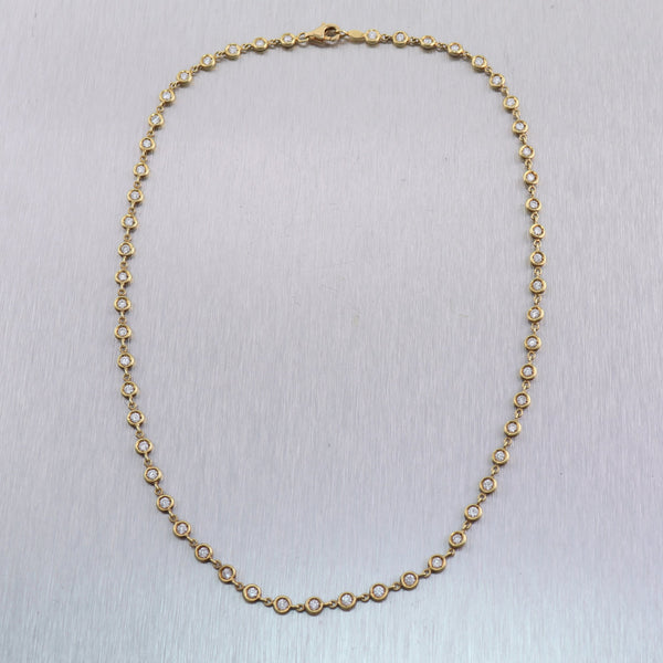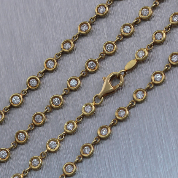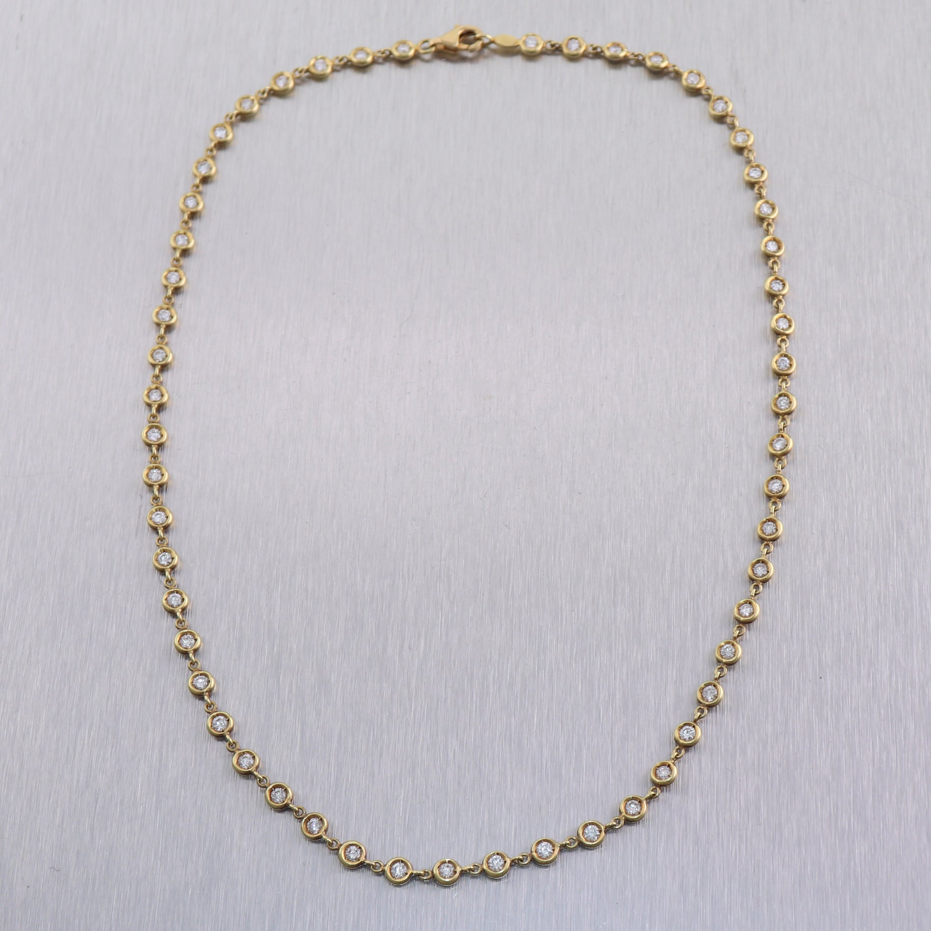 For your consideration, an authentic 18k Yellow Gold 3.75ctw Diamonds By The Yard 16" Necklace. This piece will come in a lovely jewelry box for a perfect presentation and our unconditional 30 day money back return policy. A3