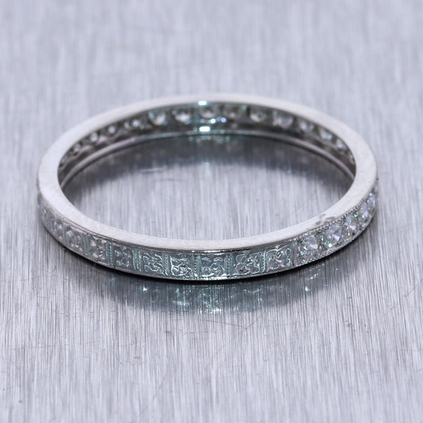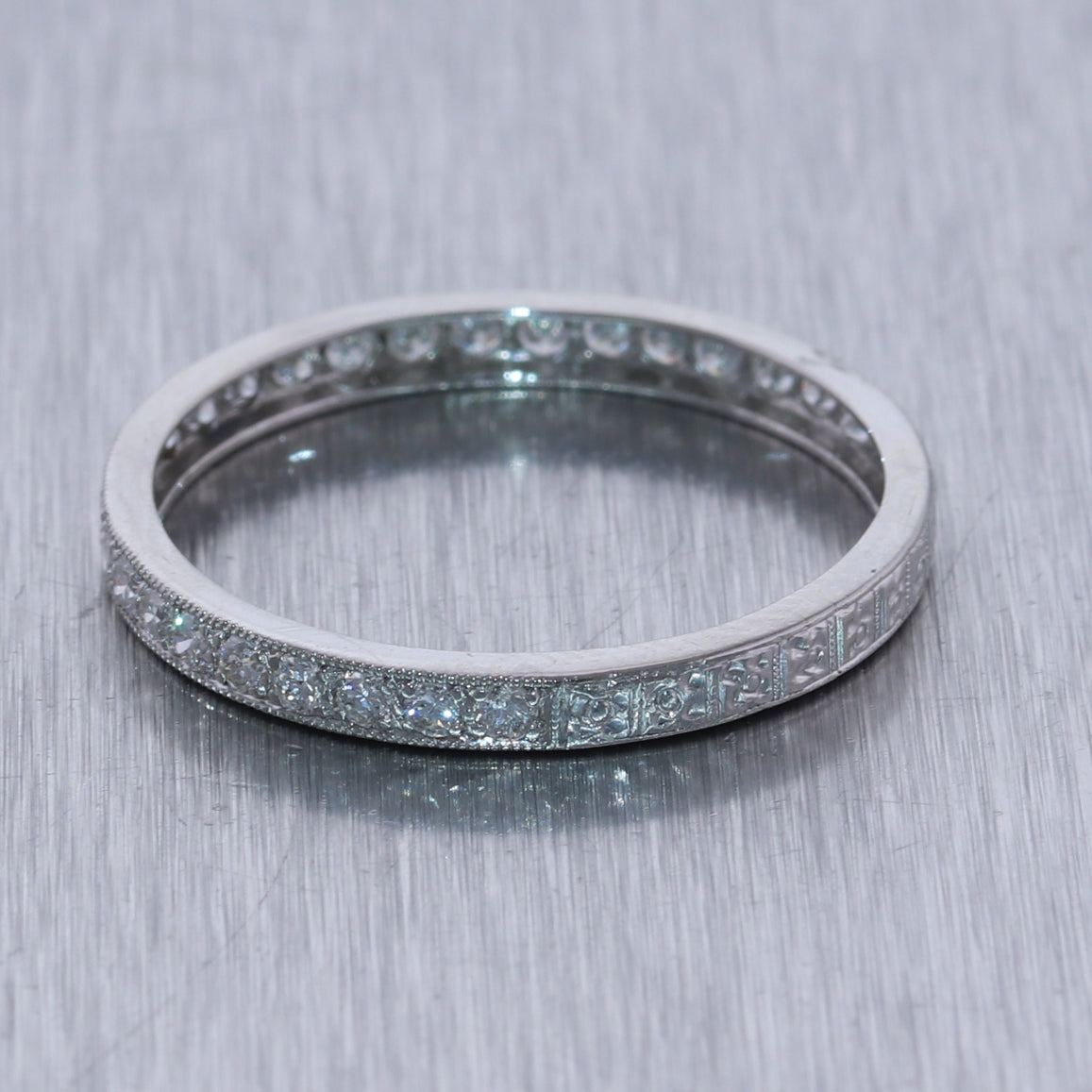 For your consideration, an authentic 1920's Antique Art Deco Platinum 0.50ctw Diamond Wedding Band Ring. This piece will come in a lovely ring box for a perfect presentation and our unconditional 30 day money back return policy. H2