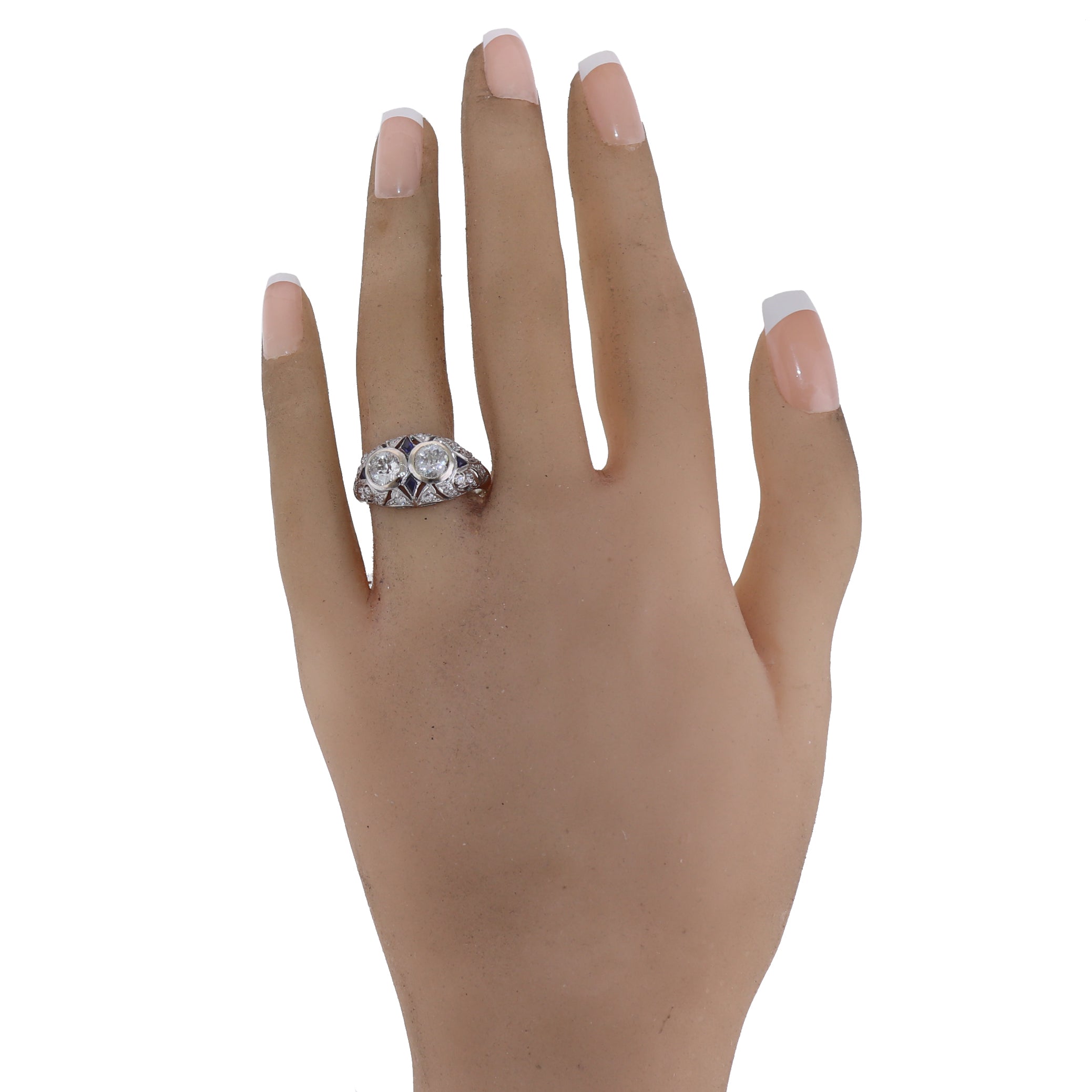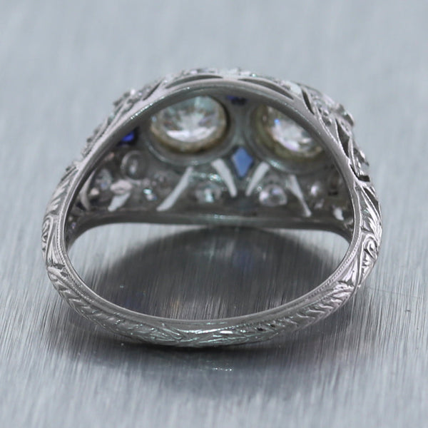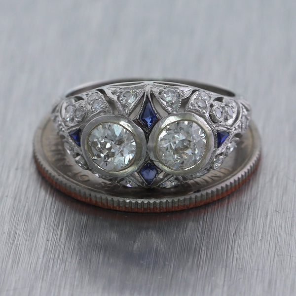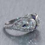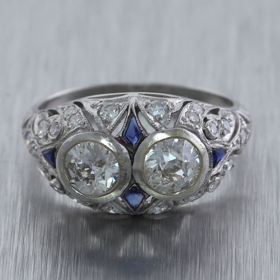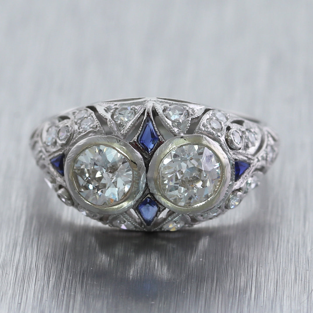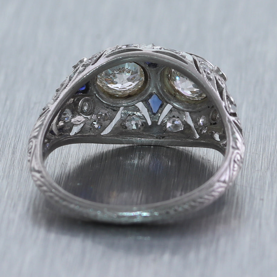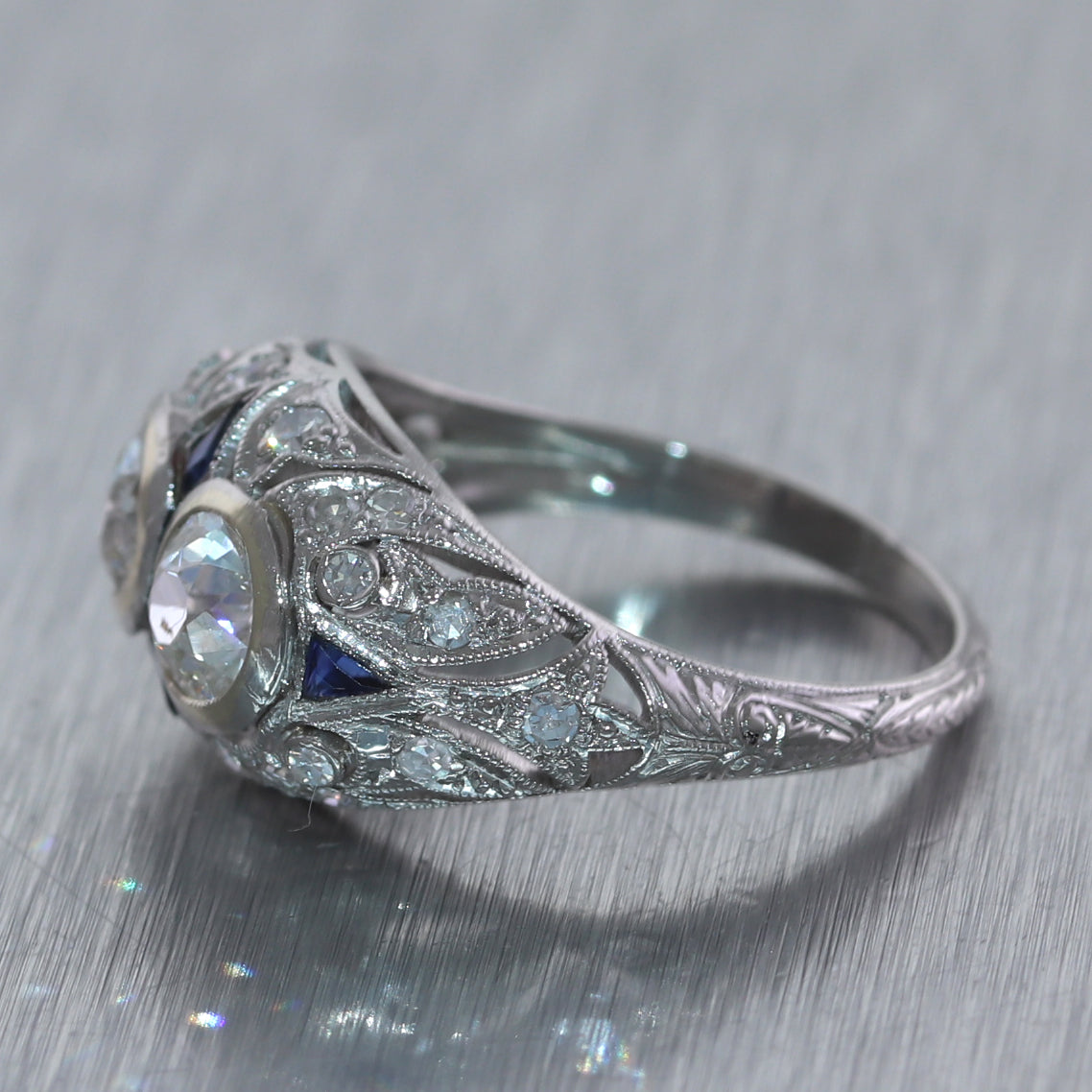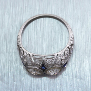 For your consideration, an authentic 1920's Antique Art Deco Platinum 1.51ctw Diamond & Sapphire Ring. It will come professionally packaged in a beautiful ring gift presentation box. A3